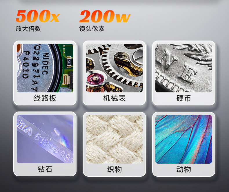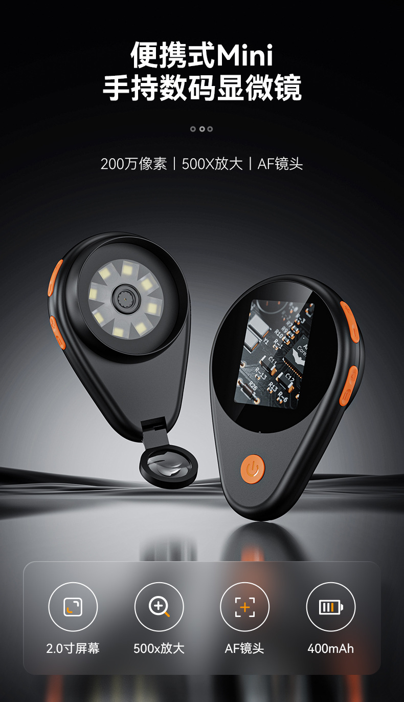 跨境新品认证齐全手持数码电子显微镜爆款500倍放大贴合观测维修