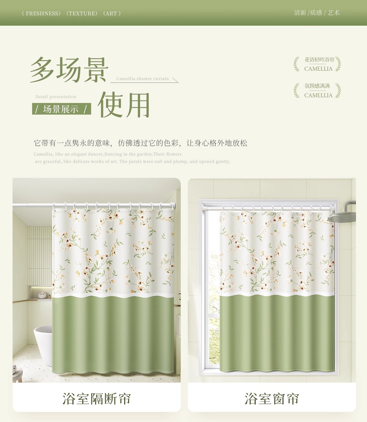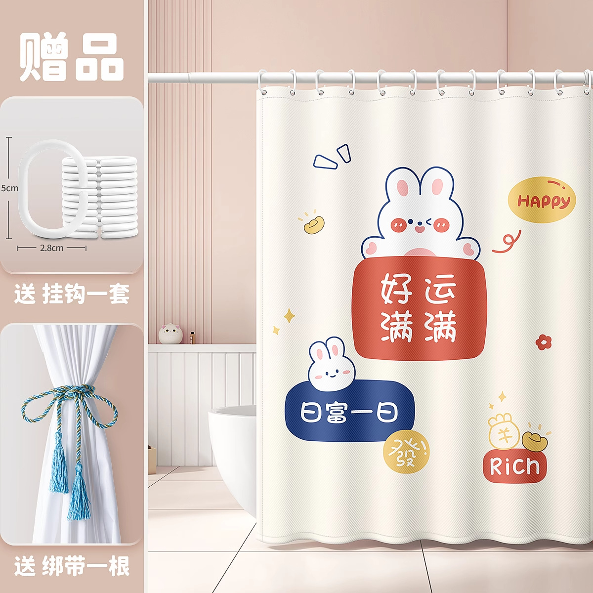 | 浴帘无杆(送挂钩):帘80宽X180高 | ¥3254 | 2000套可售 |