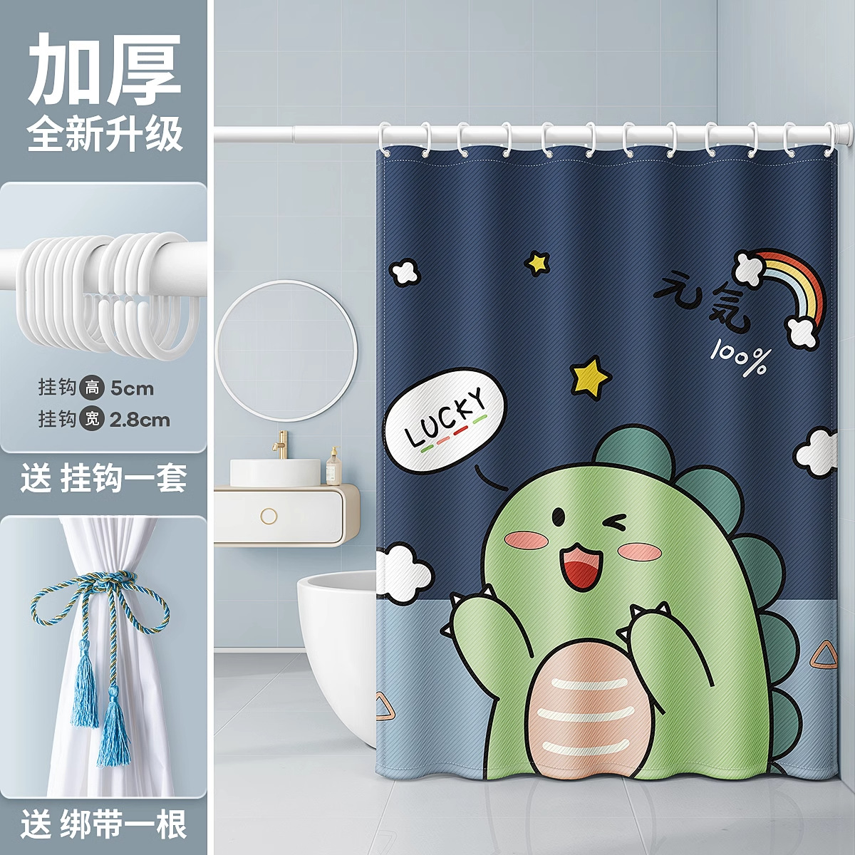 | 浴帘无杆(送挂钩):帘120宽X180高 | ¥3919 | 2000套可售 |