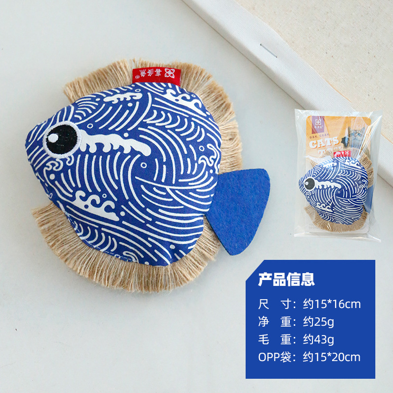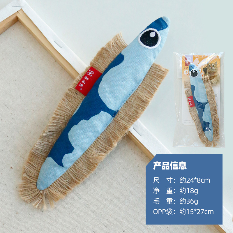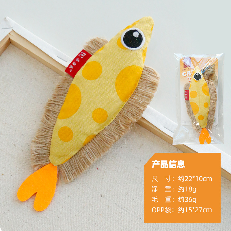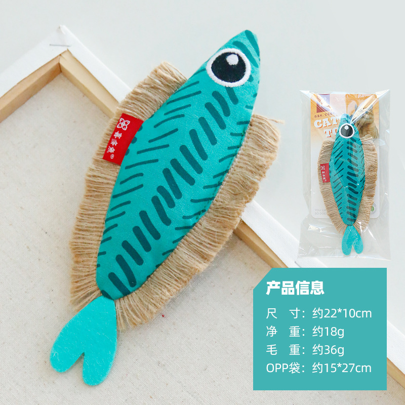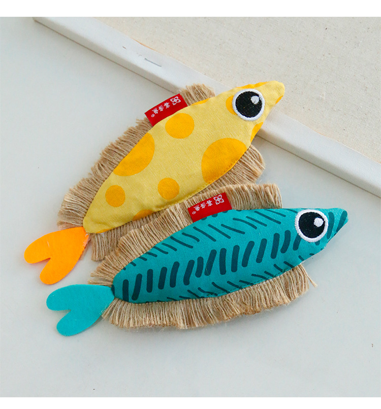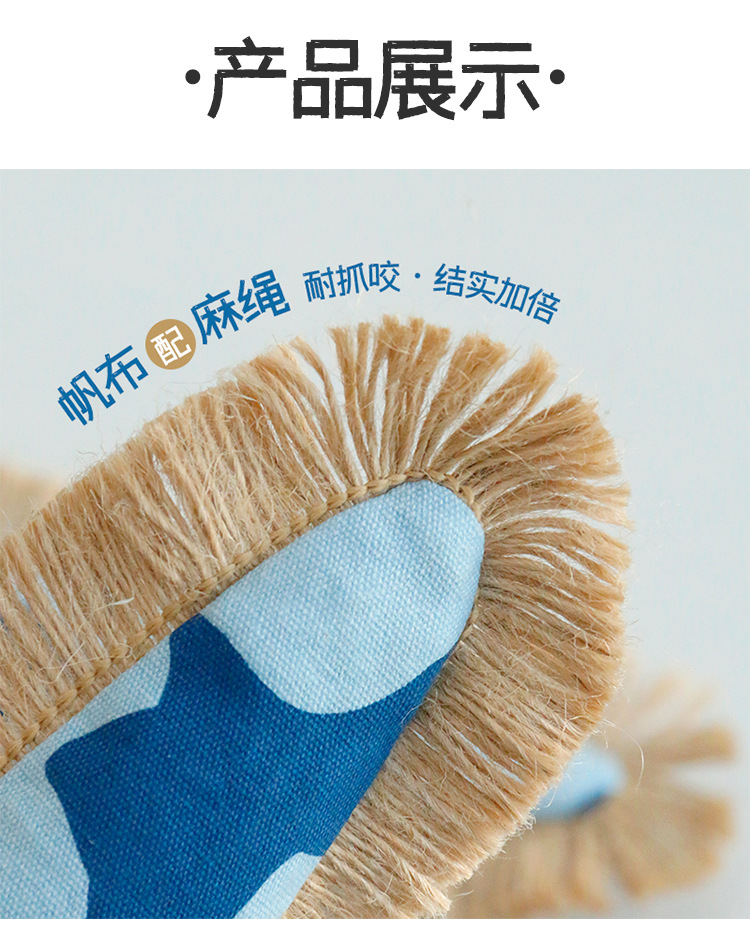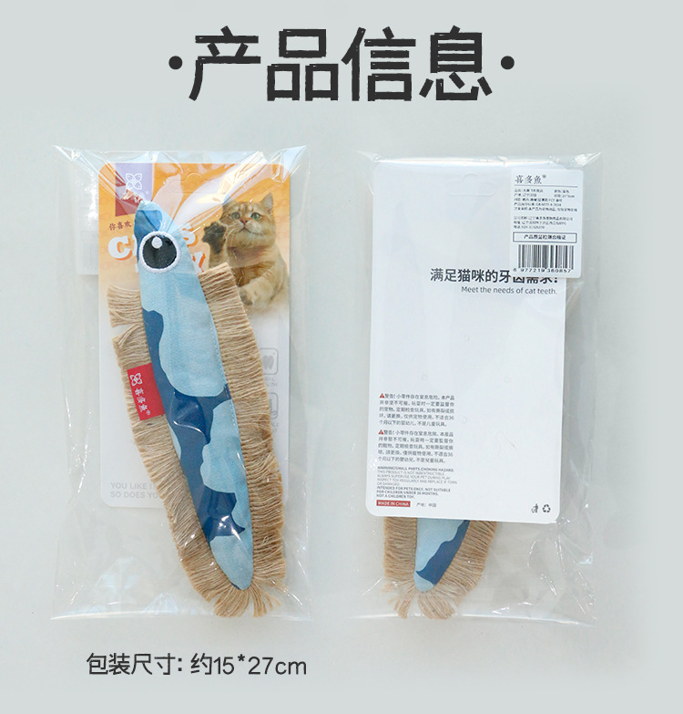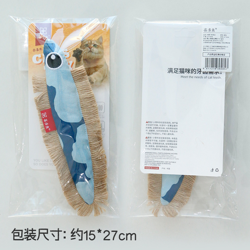 喜多鱼原创新品大眼飞鱼响纸猫薄荷玩具麻绳帆布鱼啃咬宠物玩具 投诉
