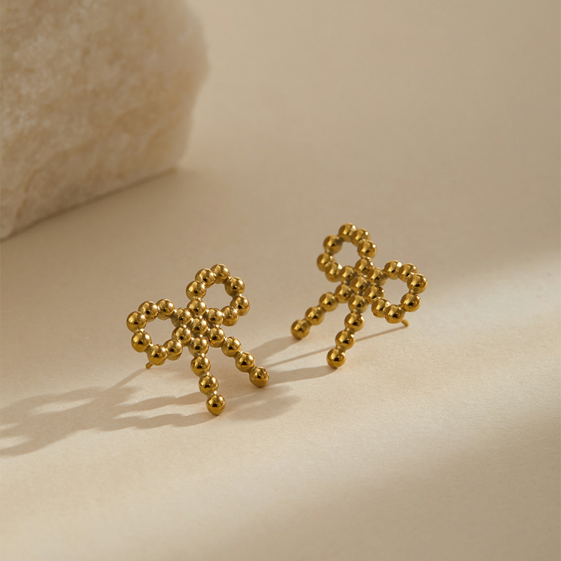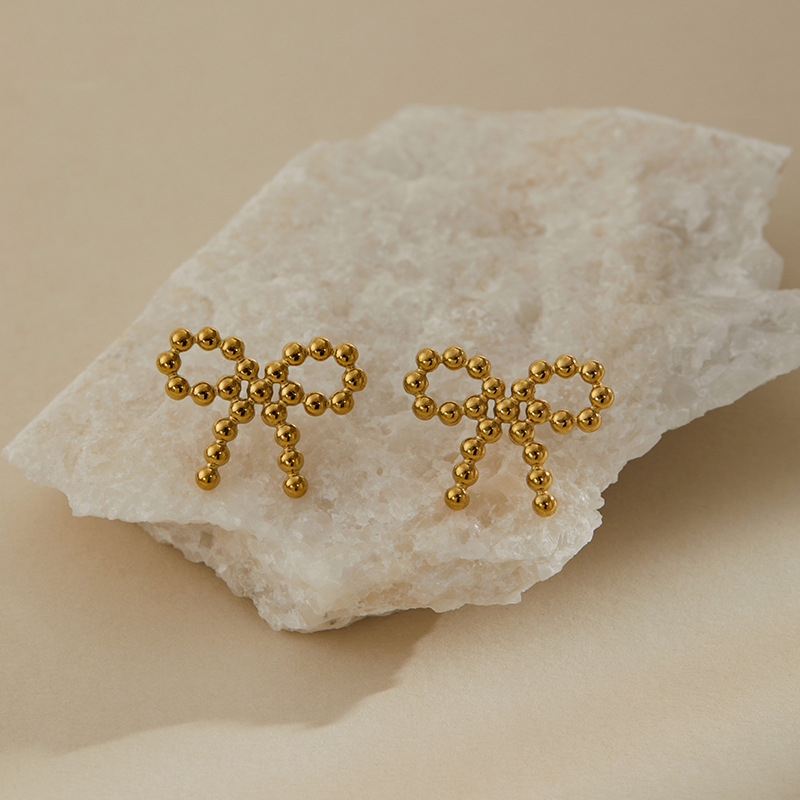 蝴蝶结设计浪漫甜美耳环真空电镀保色不锈钢经典元素外贸专供饰品