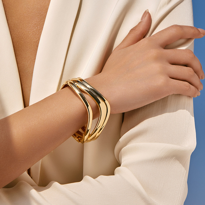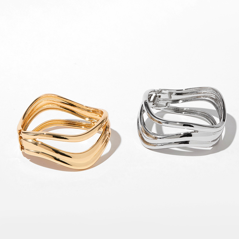 TEMU中东市场不规则多层环绕线条手镯可开口个性冷淡风简单手环