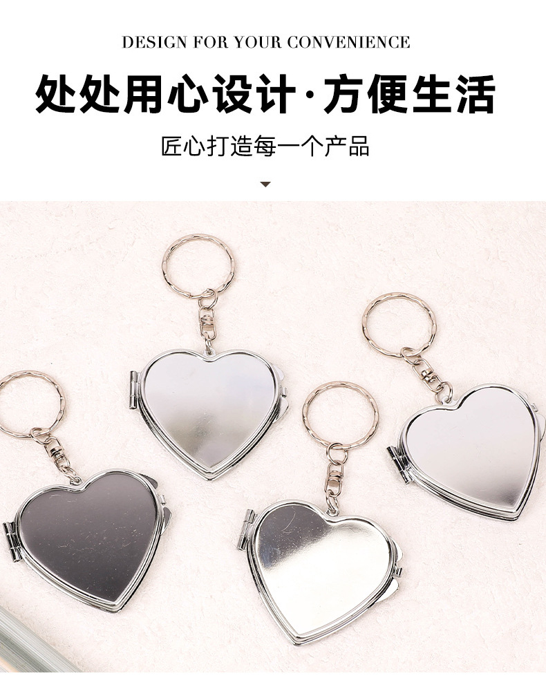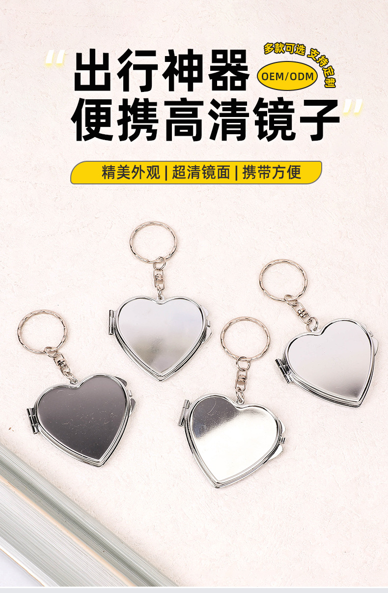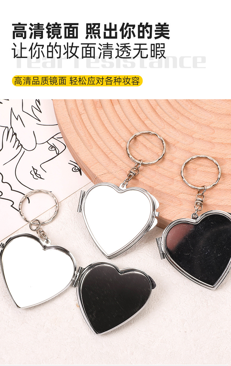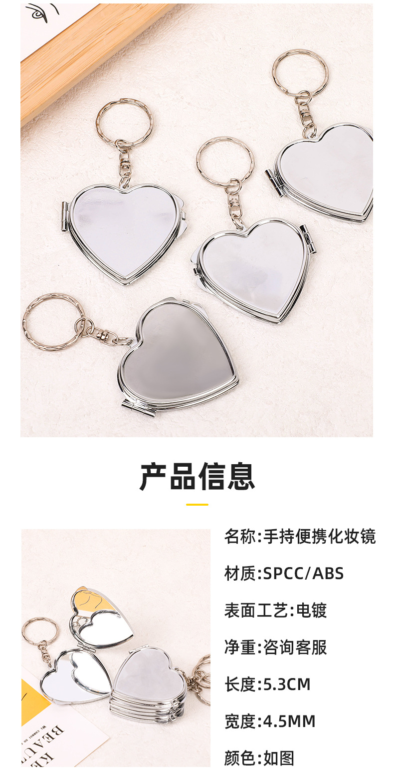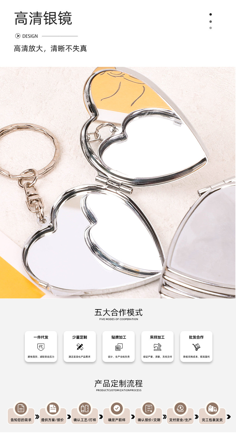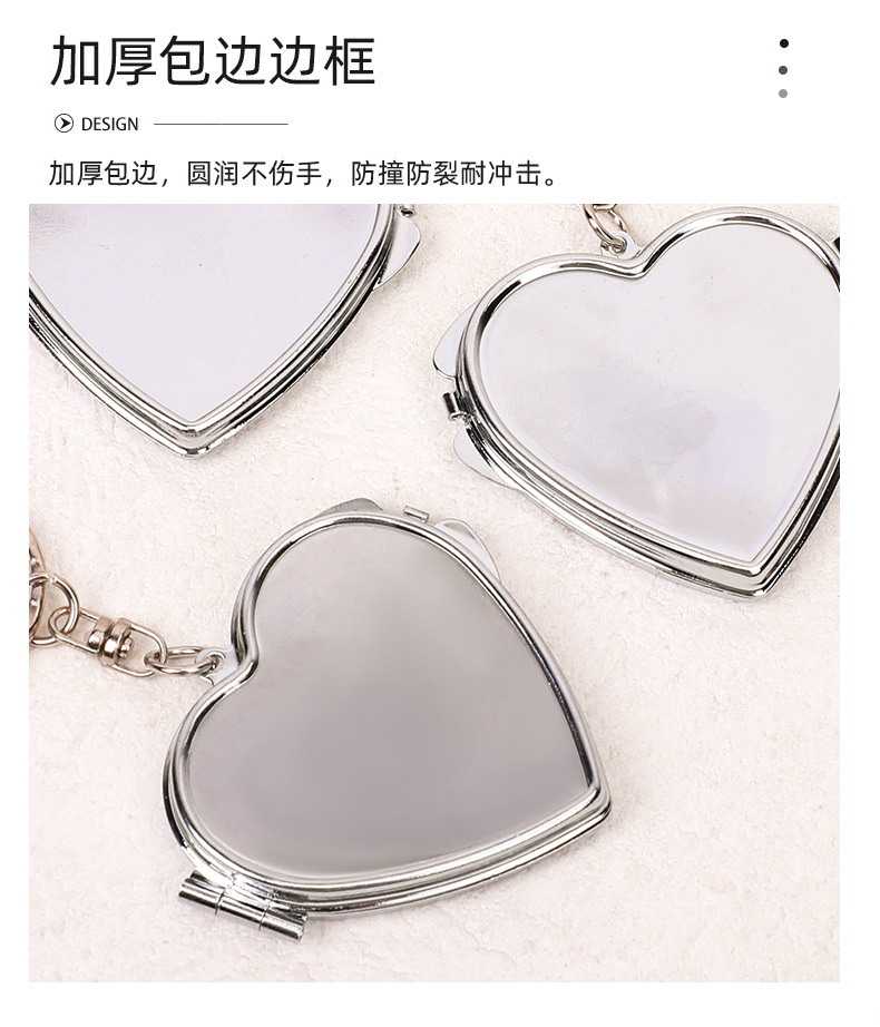 爱心形随身镜金属创意可翻盖式化妆镜潮流可DIY双面折叠镜定制 投诉