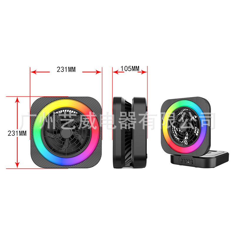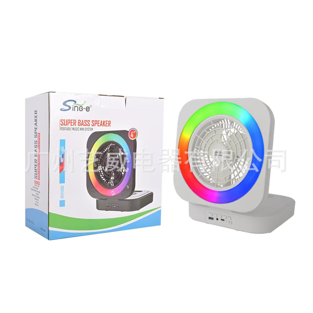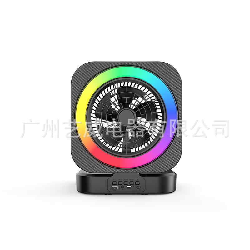 With Bluetooth/radio /USB/AUX, DC-5V rechargeable Type-c charging base + no screen /USB no boost/single power amplifier, with lithium battery protection, key volume, box function + with fan, fan separate button control on or off (there are three gears) + with magic lights, magic lights are controlled by MOD (click to change magic mode)