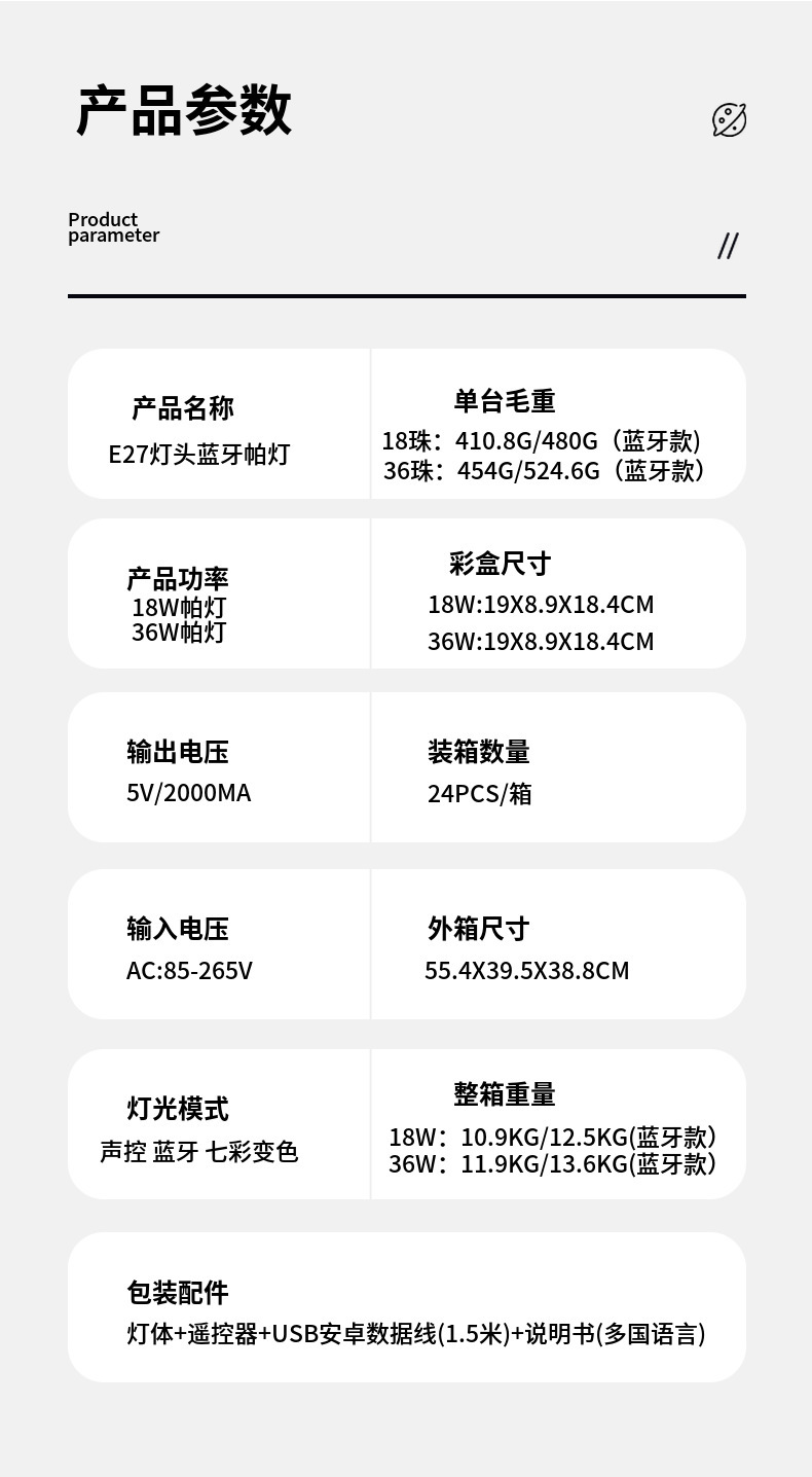 | 85-265V /E27灯头/遥控帕灯 | ¥2500 | 5000只可售 |
