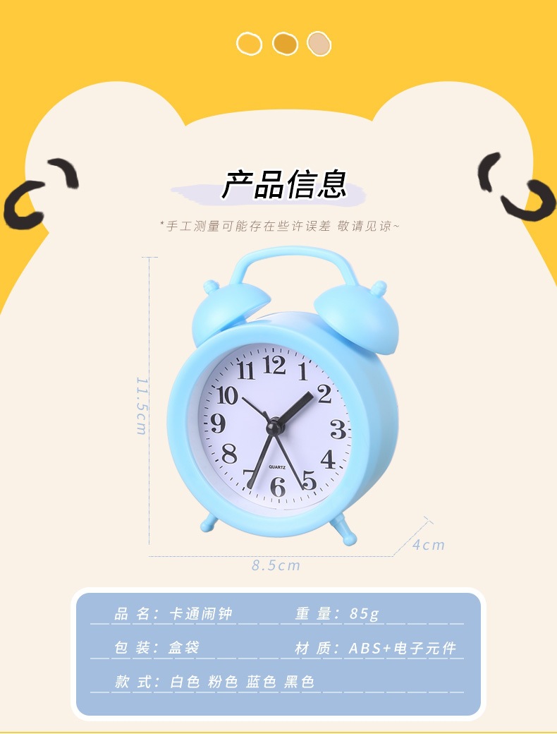 卡通闹钟创意卧室床头小闹钟客厅数字塑料时钟学生双玲装饰小台钟 投诉