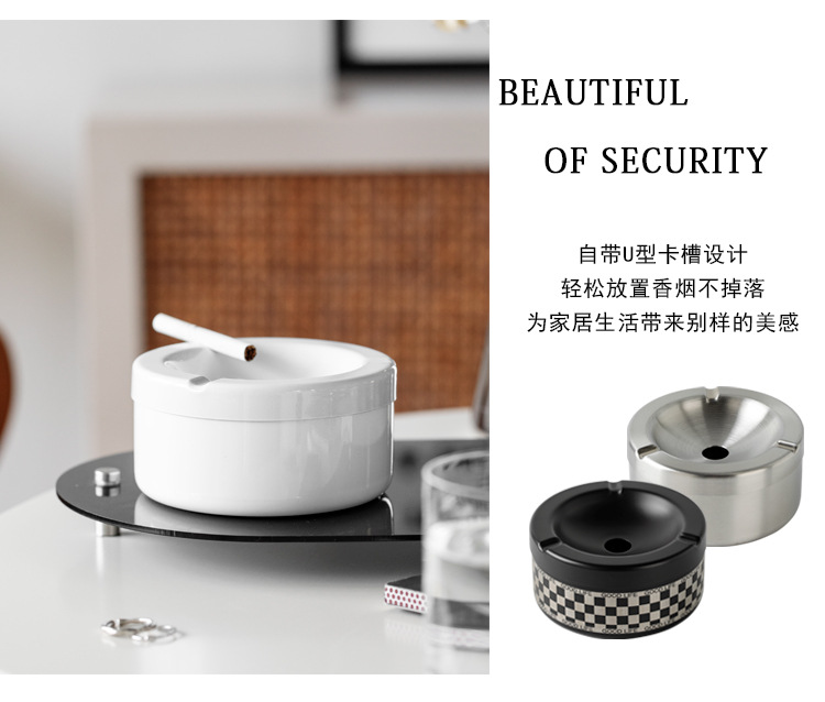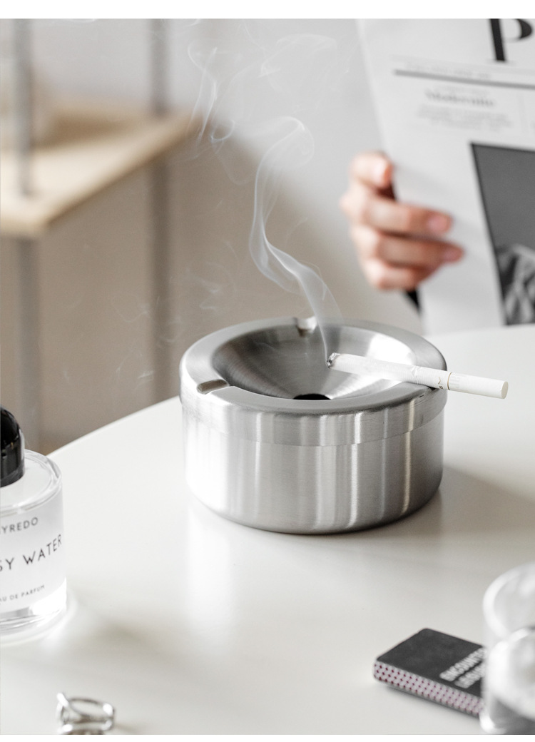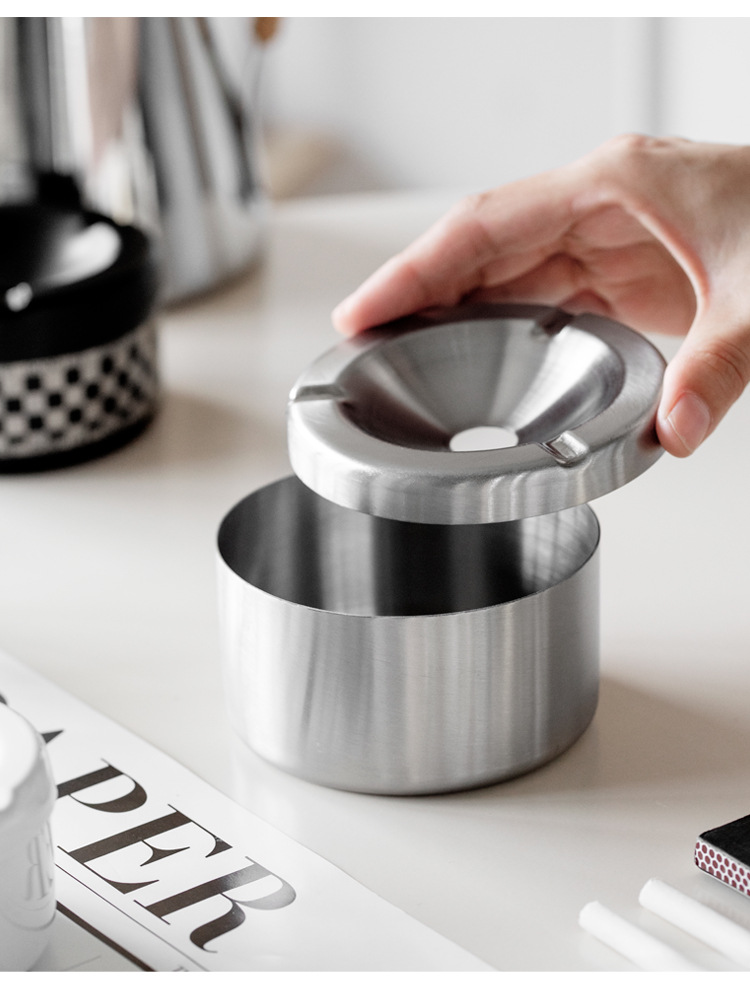 创意欧式带盖加厚不锈钢烟灰缸创意款复古防风家居酒店商用可logo English | 投诉