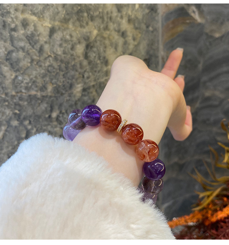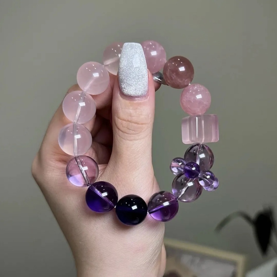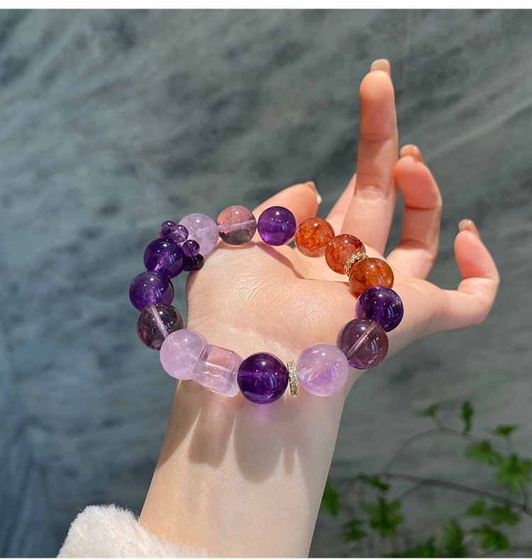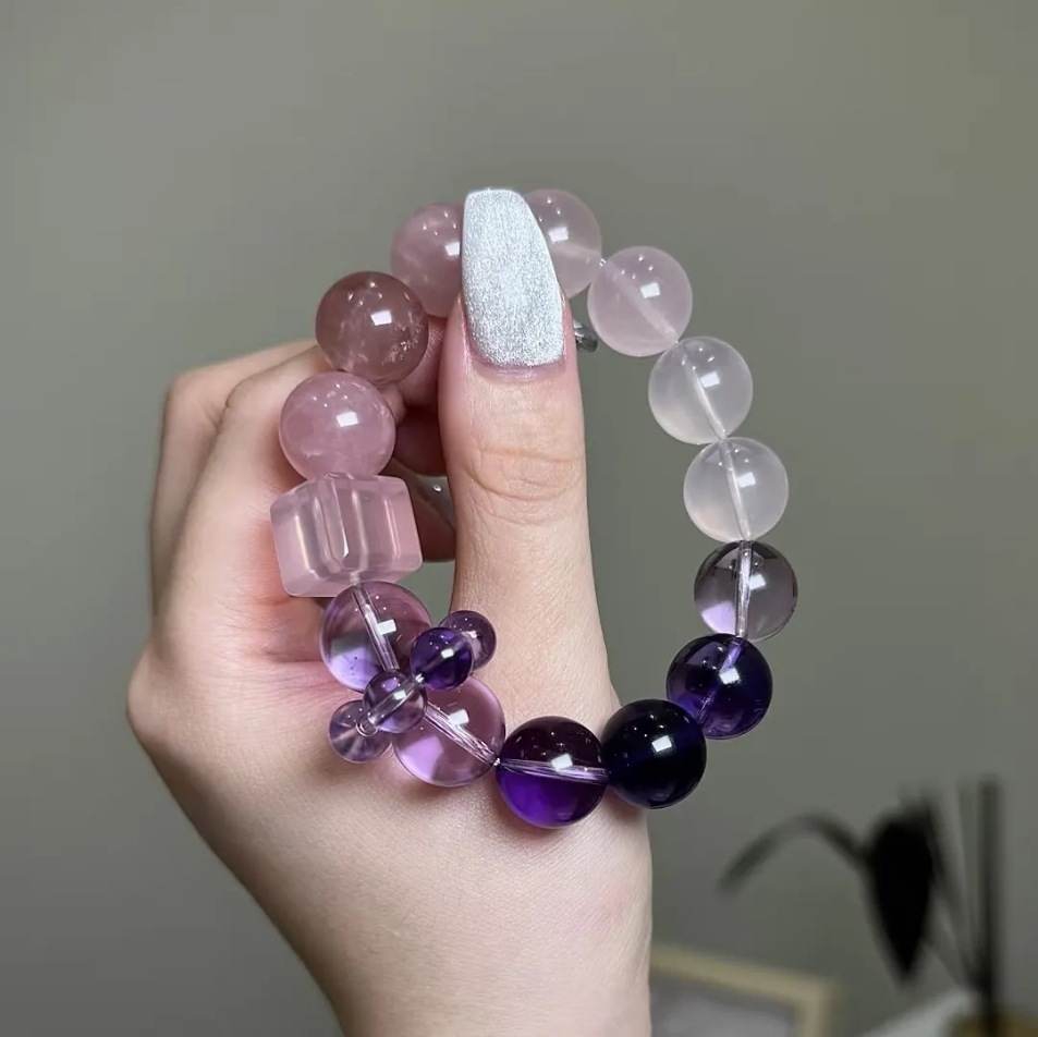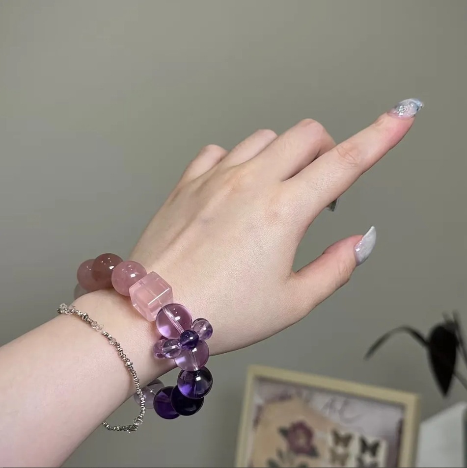 天然紫水晶渐变粉晶透明白水晶手串轻奢设计感小众串珠手链女手饰 English | 投诉