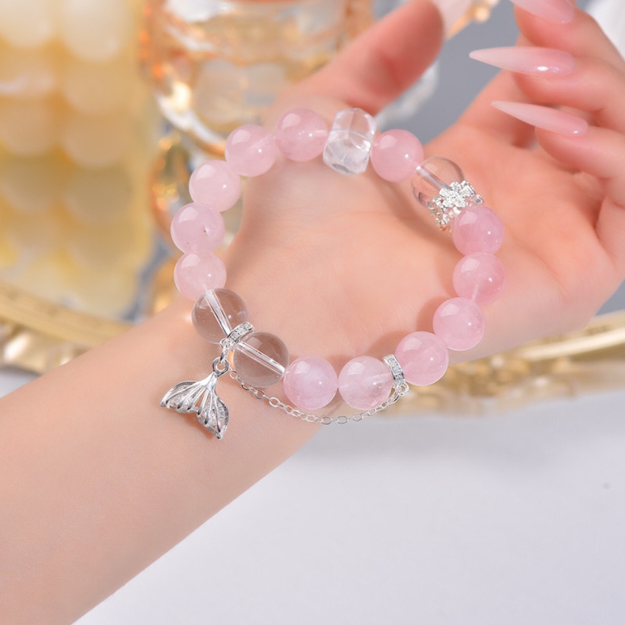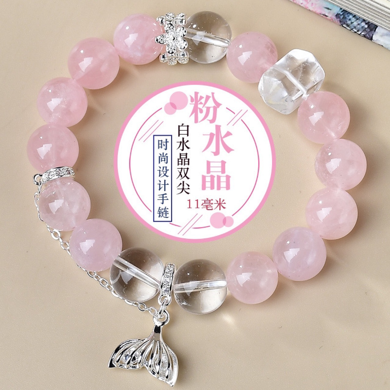 DIKAI 粉晶手链diy手工圆珠批发天然水晶手串爆款饰品新款手链 English | 投诉