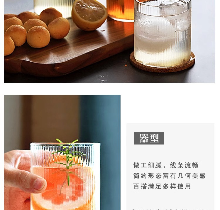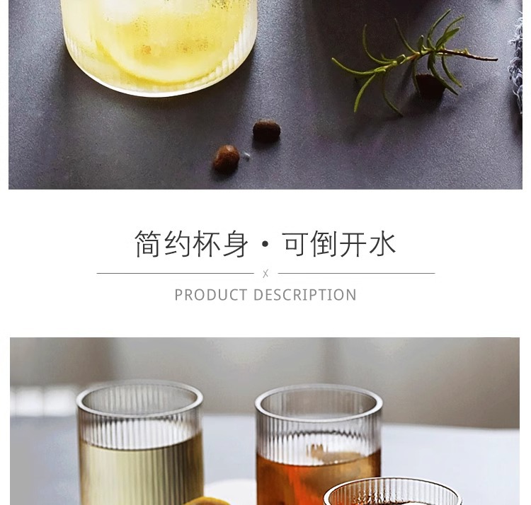 批发高硼硅日式竖纹玻璃杯简约酒吧鸡尾酒杯家用耐冷热美式咖啡杯