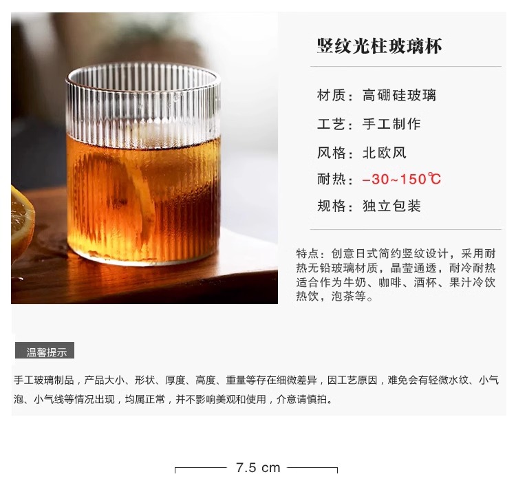 批发高硼硅日式竖纹玻璃杯简约酒吧鸡尾酒杯家用耐冷热美式咖啡杯 投诉