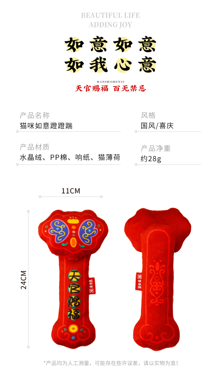 国潮新年吉祥如意天官赐福猫薄荷响纸猫咪啃咬蹬蹬踹宠物陪伴玩具 投诉