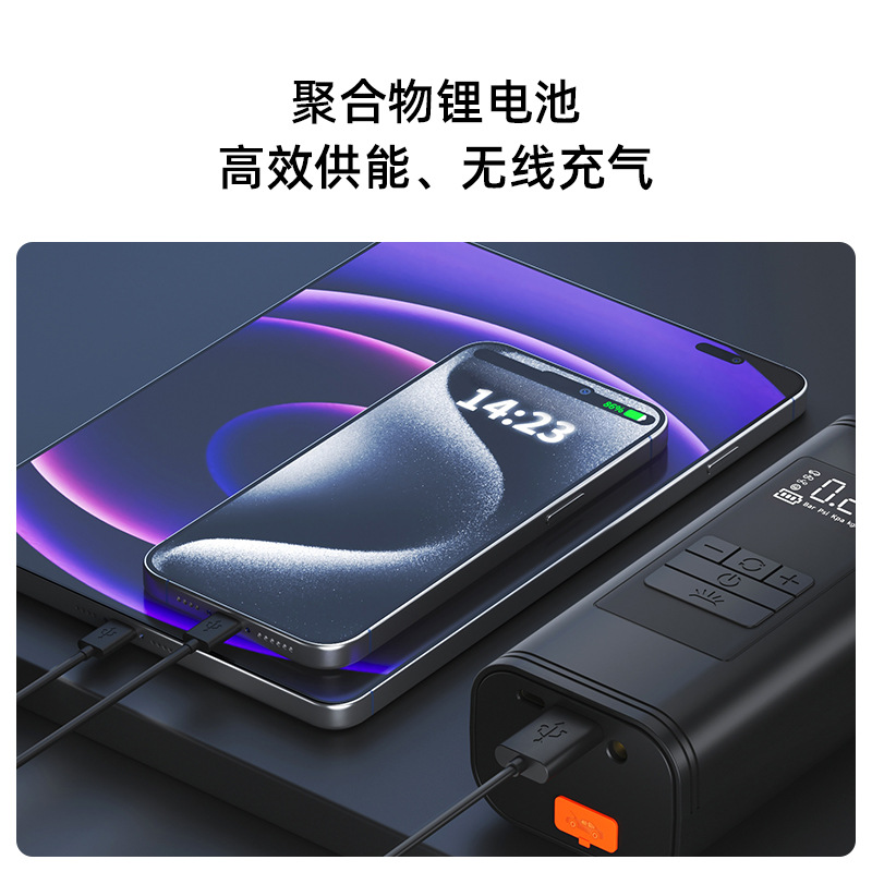 【三大功能】:汽车应急启动电源,无线+有线充气,移动设备充电