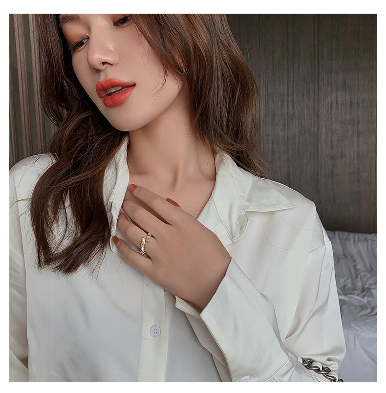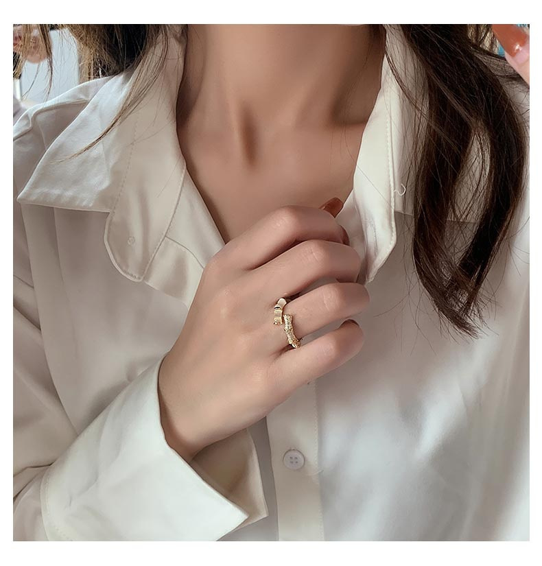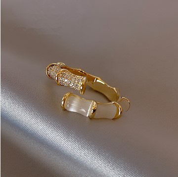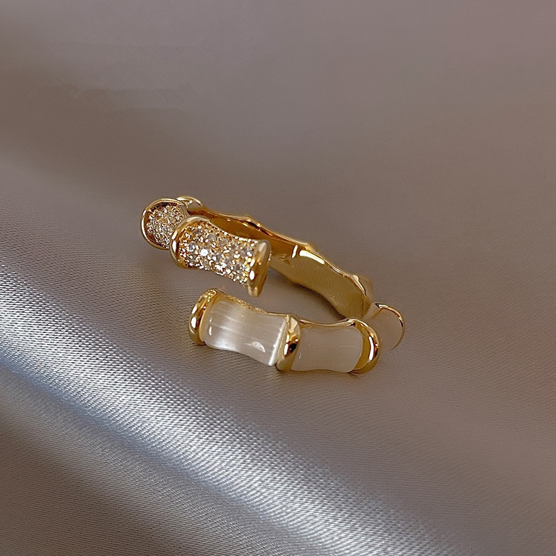 跨境新品欧美几何竹节戒指饰品开口猫眼石可调节网红同款戒指批发