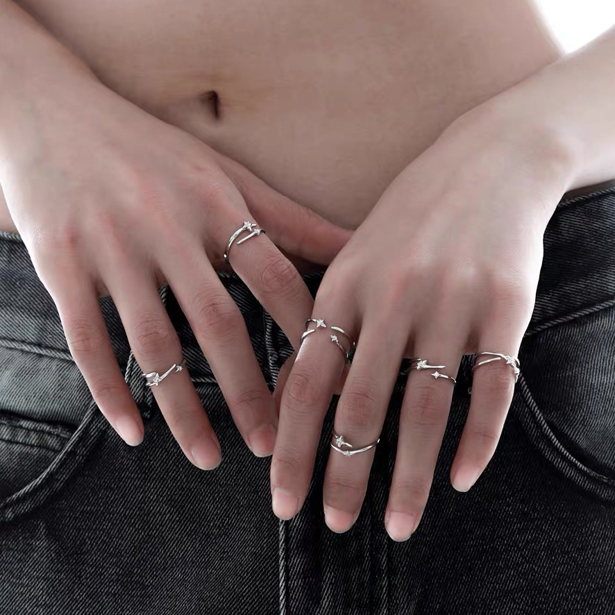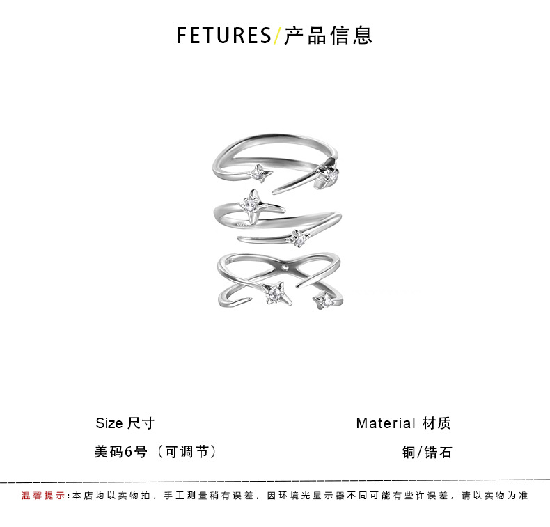 原创小众设计锆石戒指女生ins高级感冷淡风开口食指戒指环尾戒 投诉