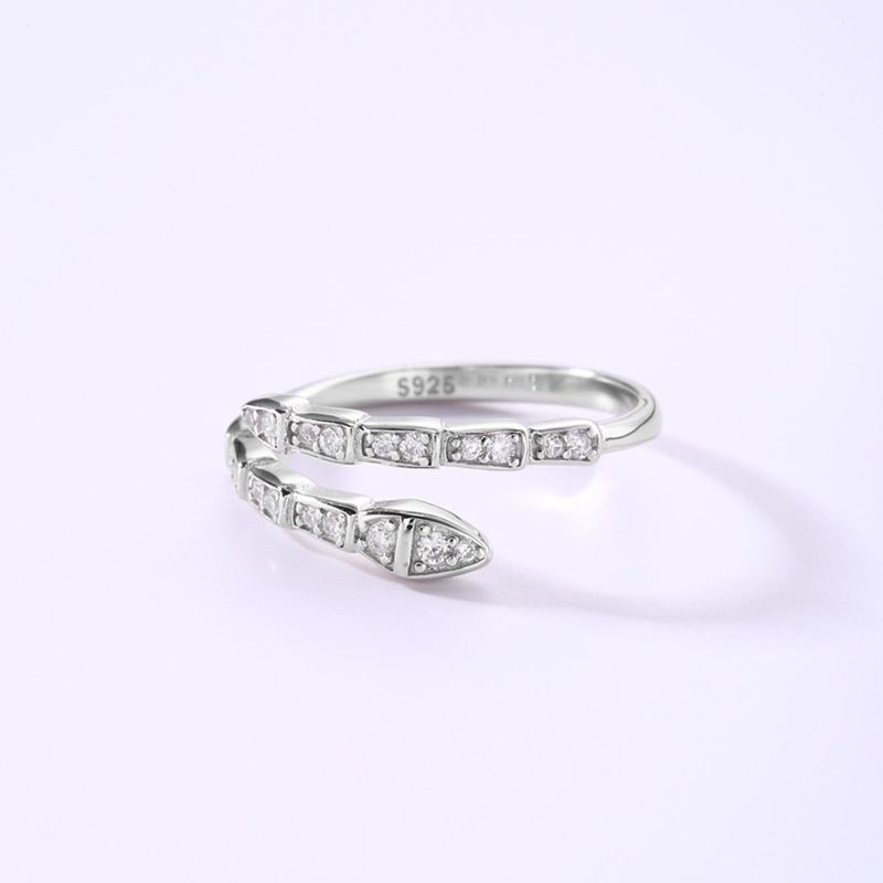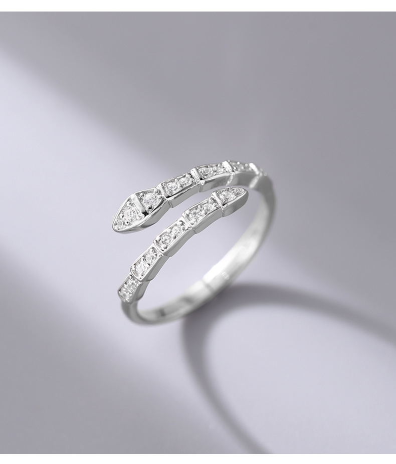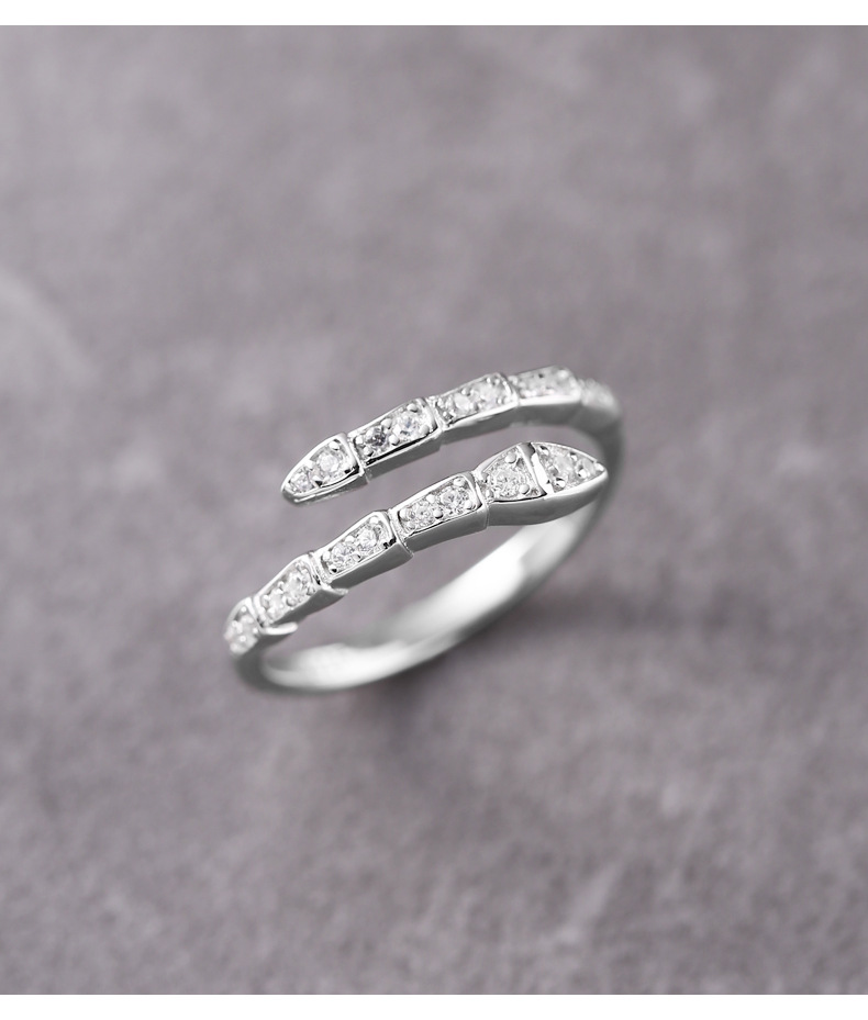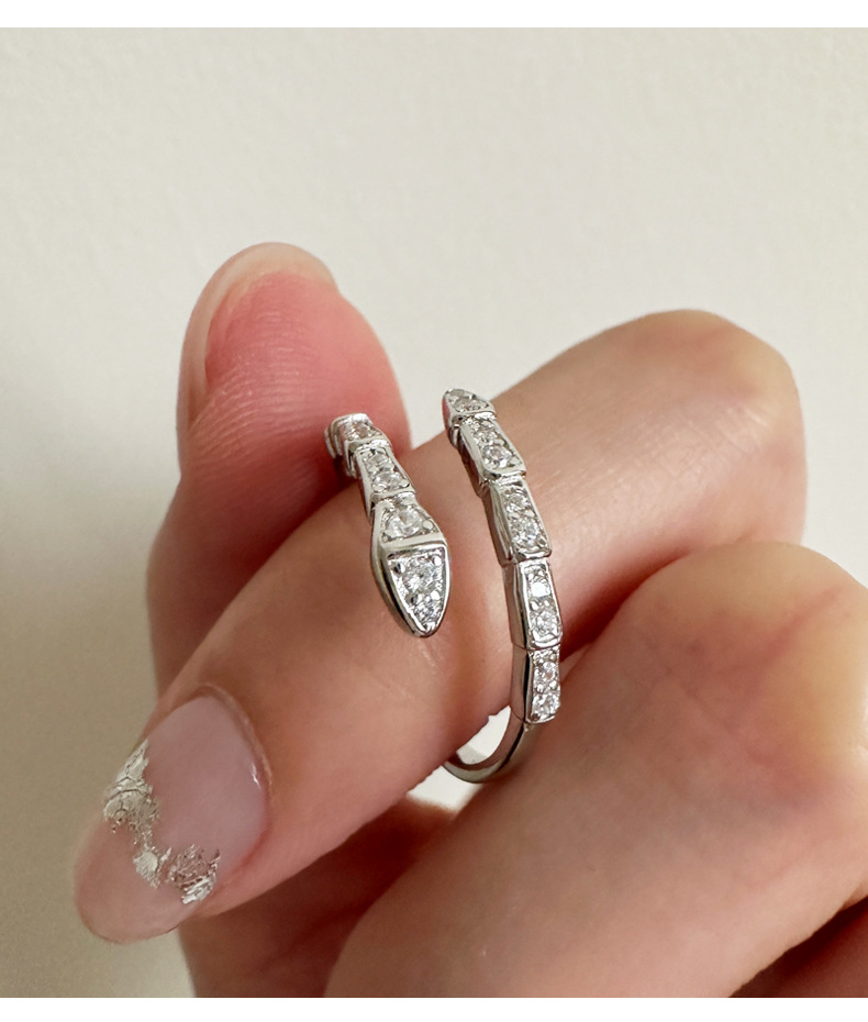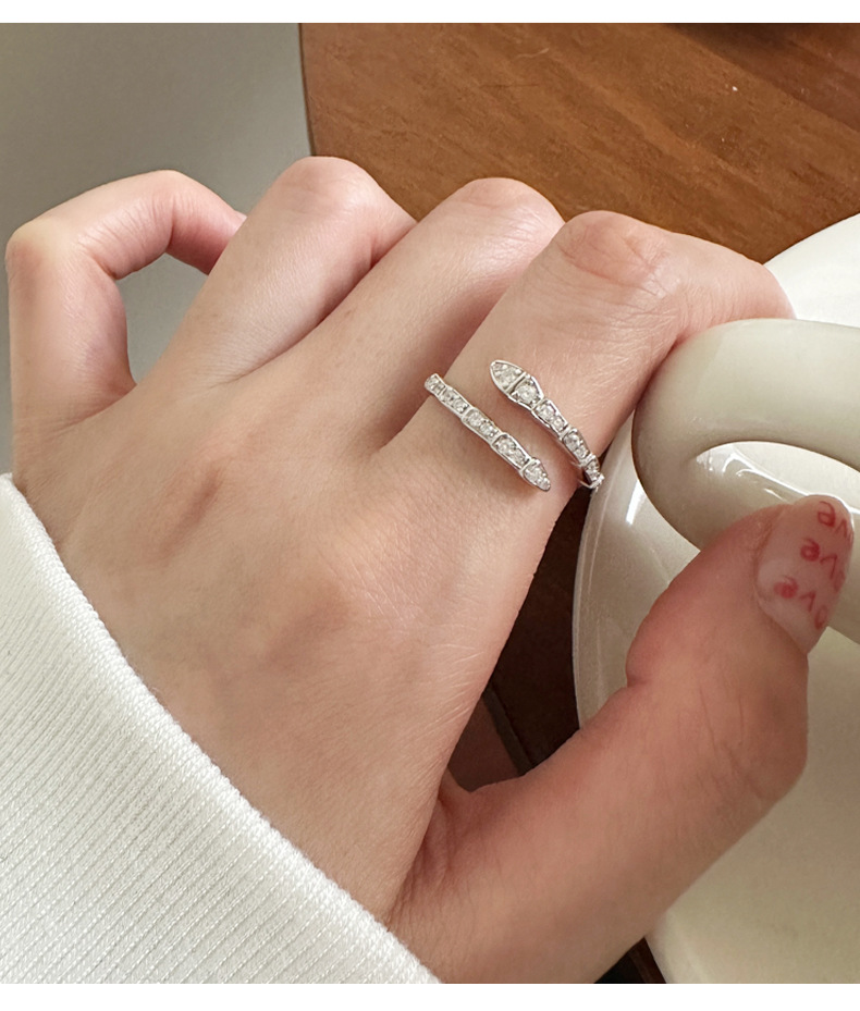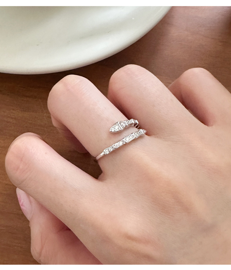 蛇形镶钻戒指女925纯银创意设计个性另类开口指环2023年新品5193Y