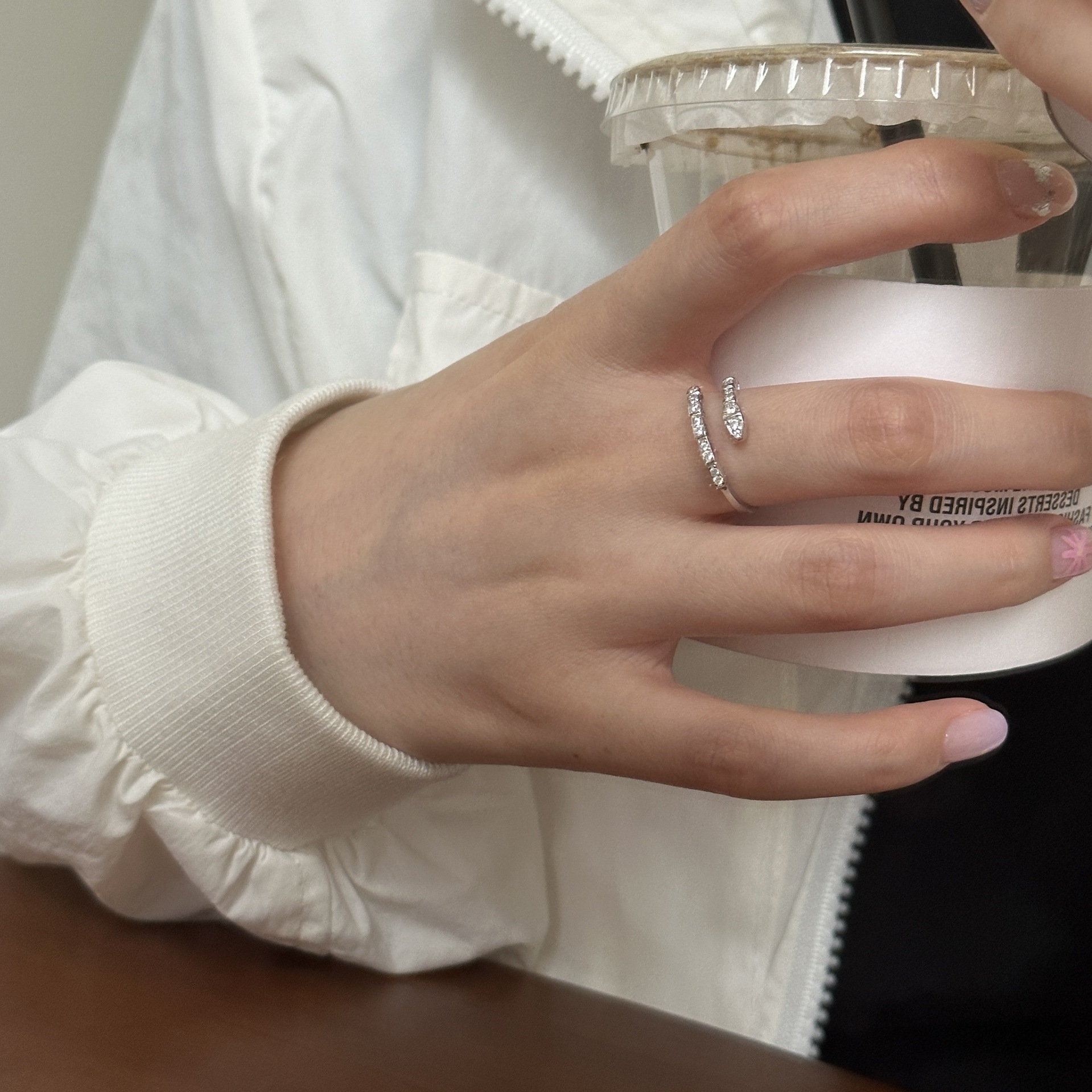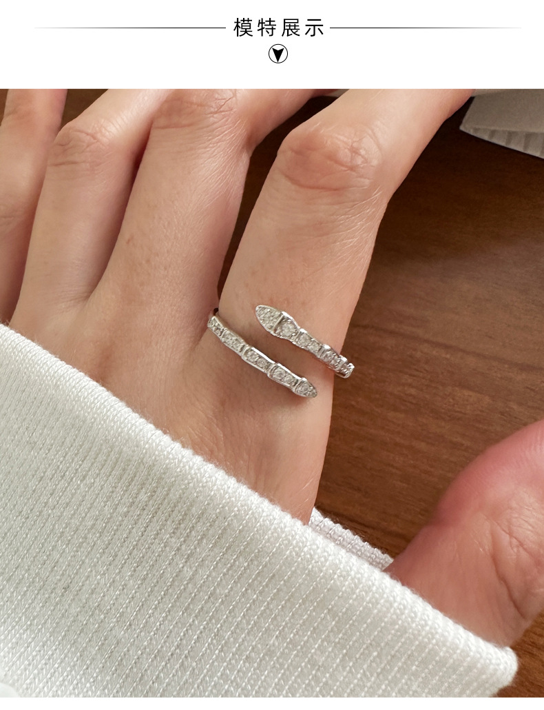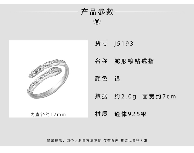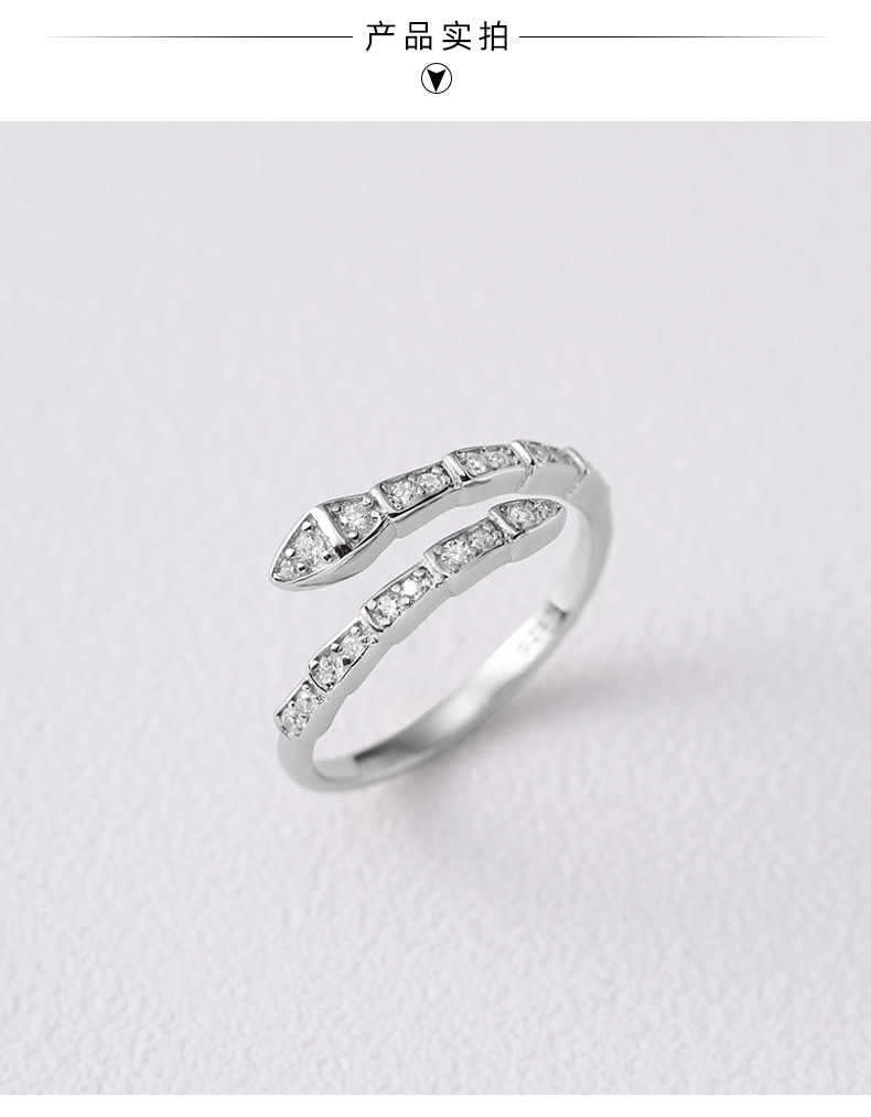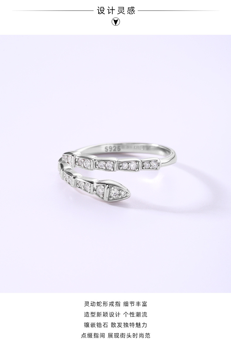 蛇形镶钻戒指女925纯银创意设计个性另类开口指环2023年新品5193Y 投诉