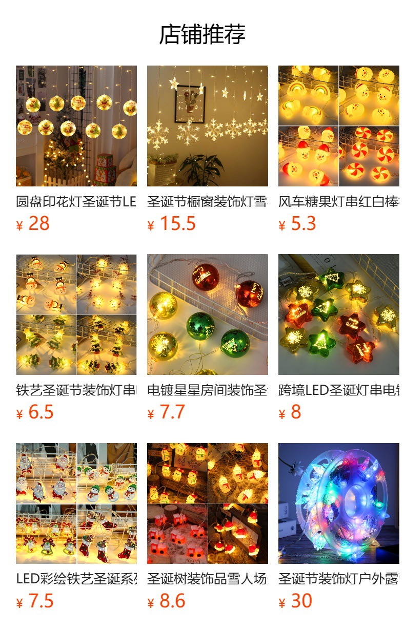 产品组成:LED灯串+塑料灯泡+雪+圣诞树+opp袋