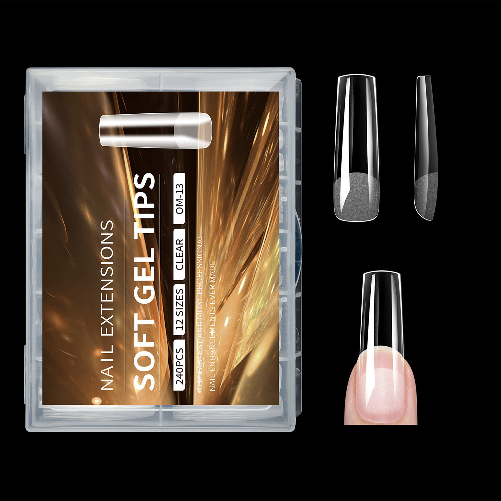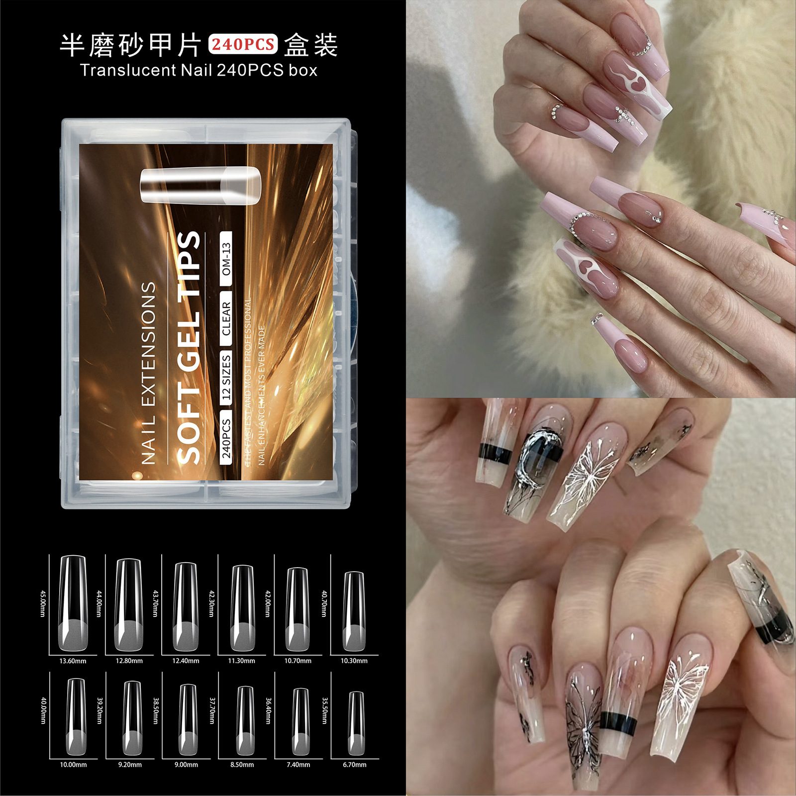 2025年新款240pcs盒装美甲甲片半透明磨砂折无痕梯形假指甲贴片