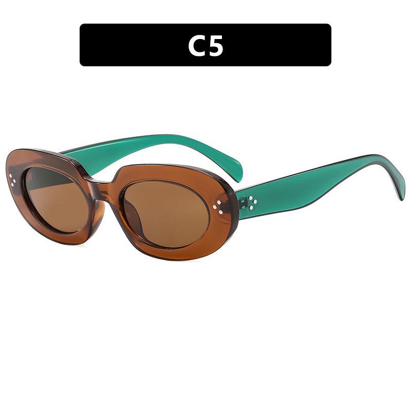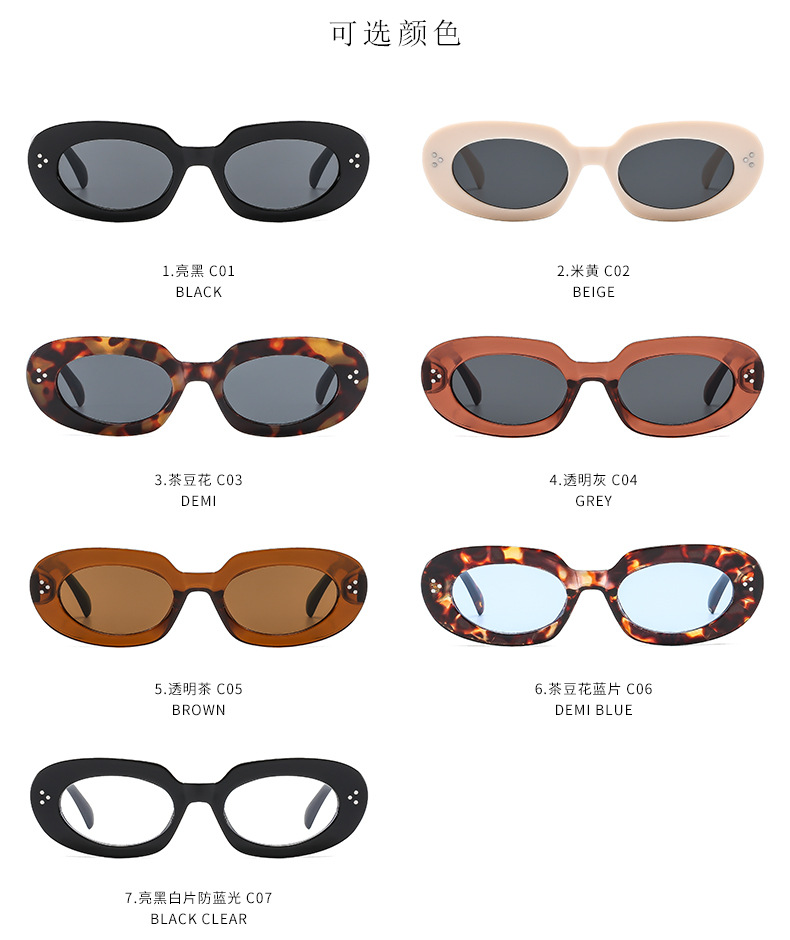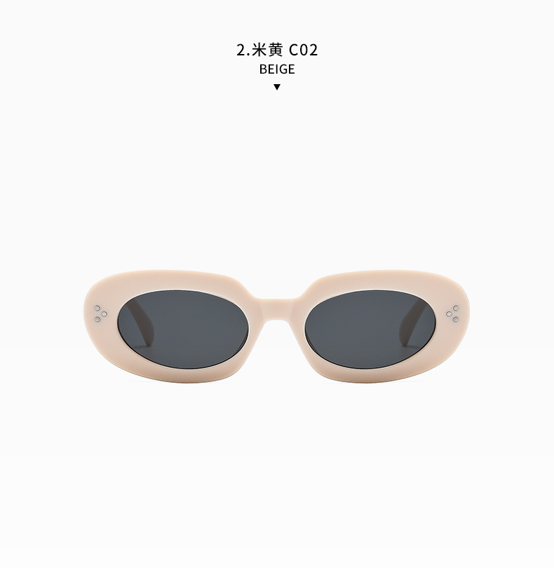 椭圆米钉墨镜2025新款欧美复古辣妹太阳眼镜防紫外线时尚太阳镜女 投诉
