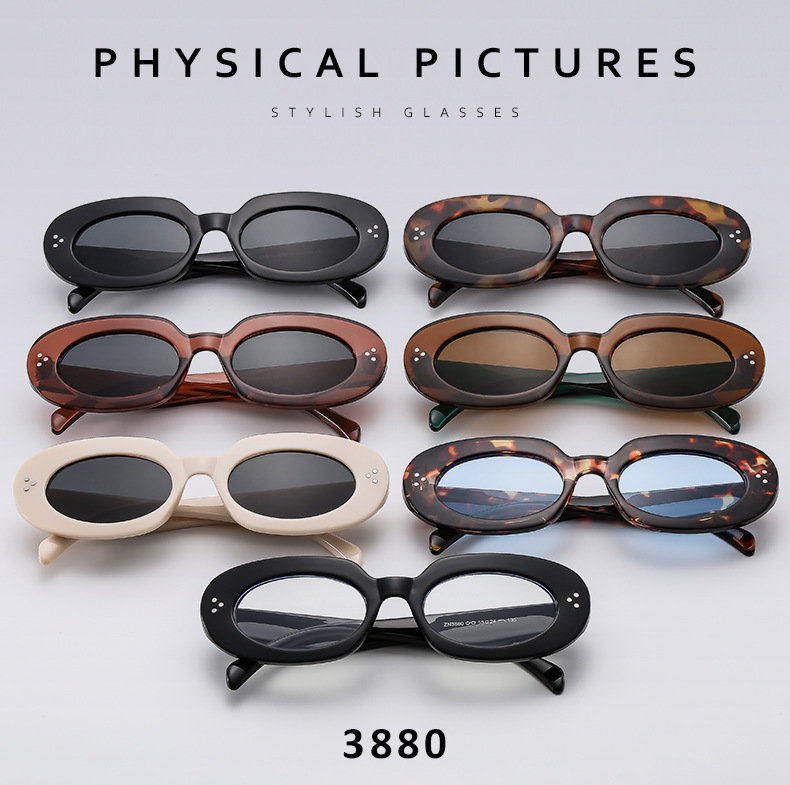 椭圆米钉墨镜2025新款欧美复古辣妹太阳眼镜防紫外线时尚太阳镜女