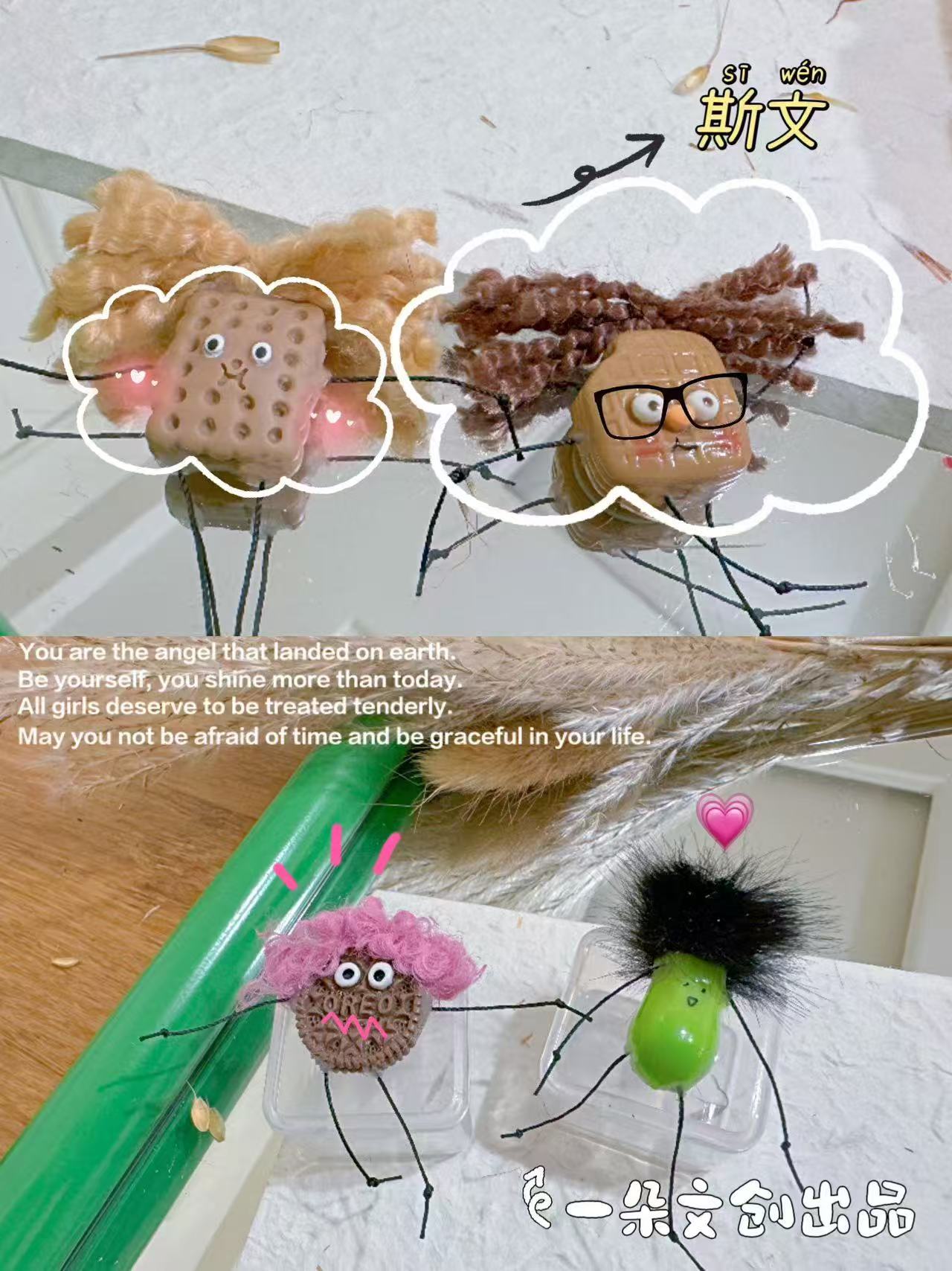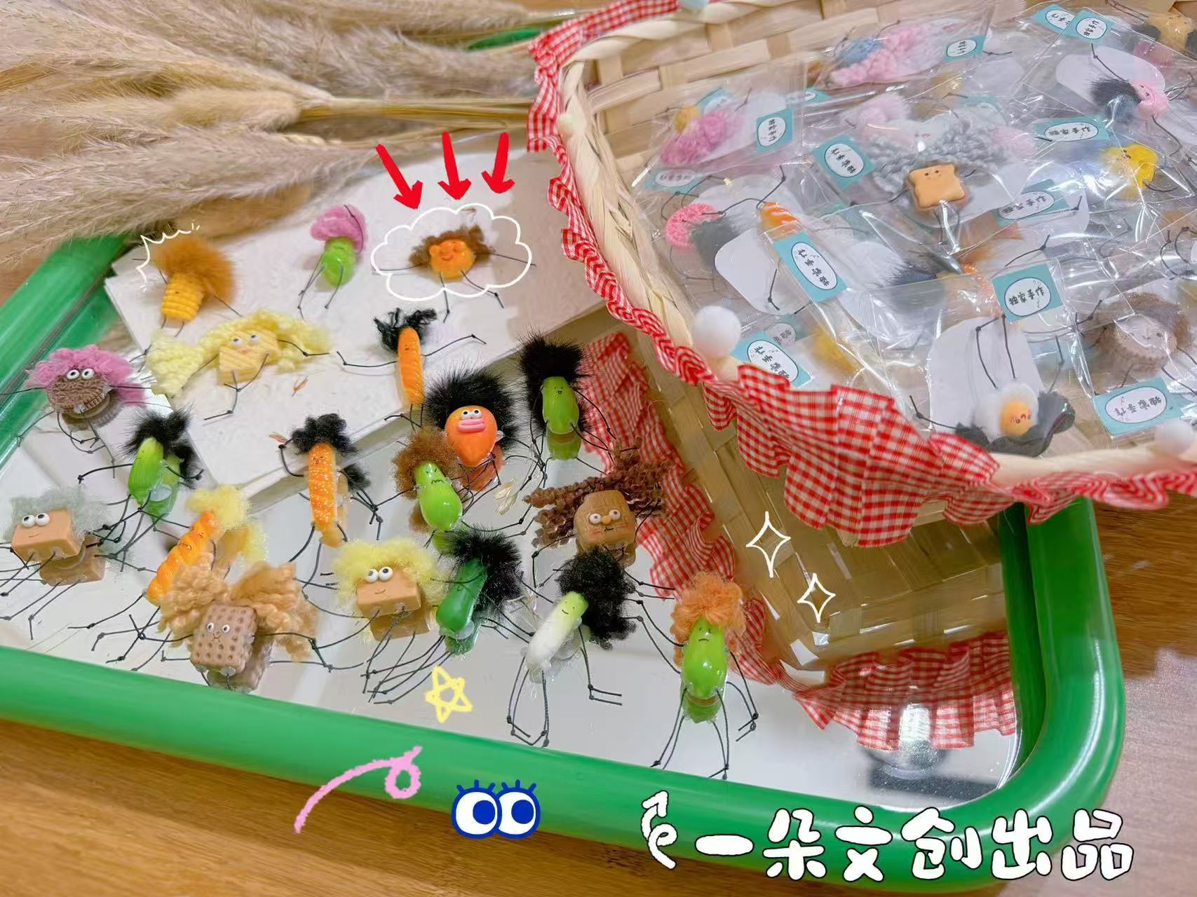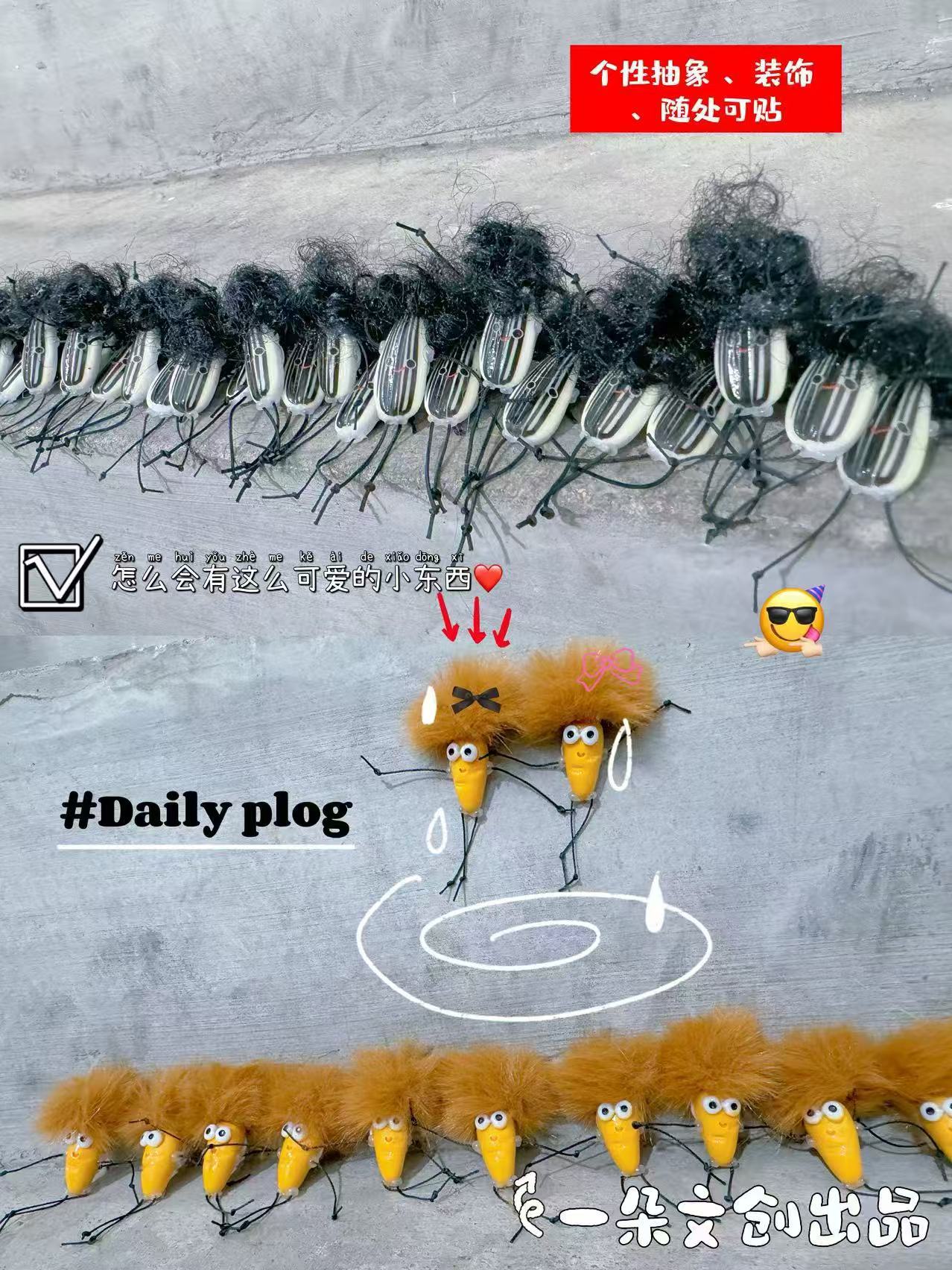 创意一筐丑萌食玩爆炸头公仔万能贴趣味瓜子面包造型个性随意贴 English | 投诉