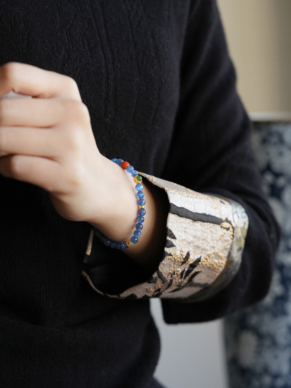 新中式蓝色天然石串珠手链轻奢水晶百搭手串女时尚清冷感手饰女 English | 投诉