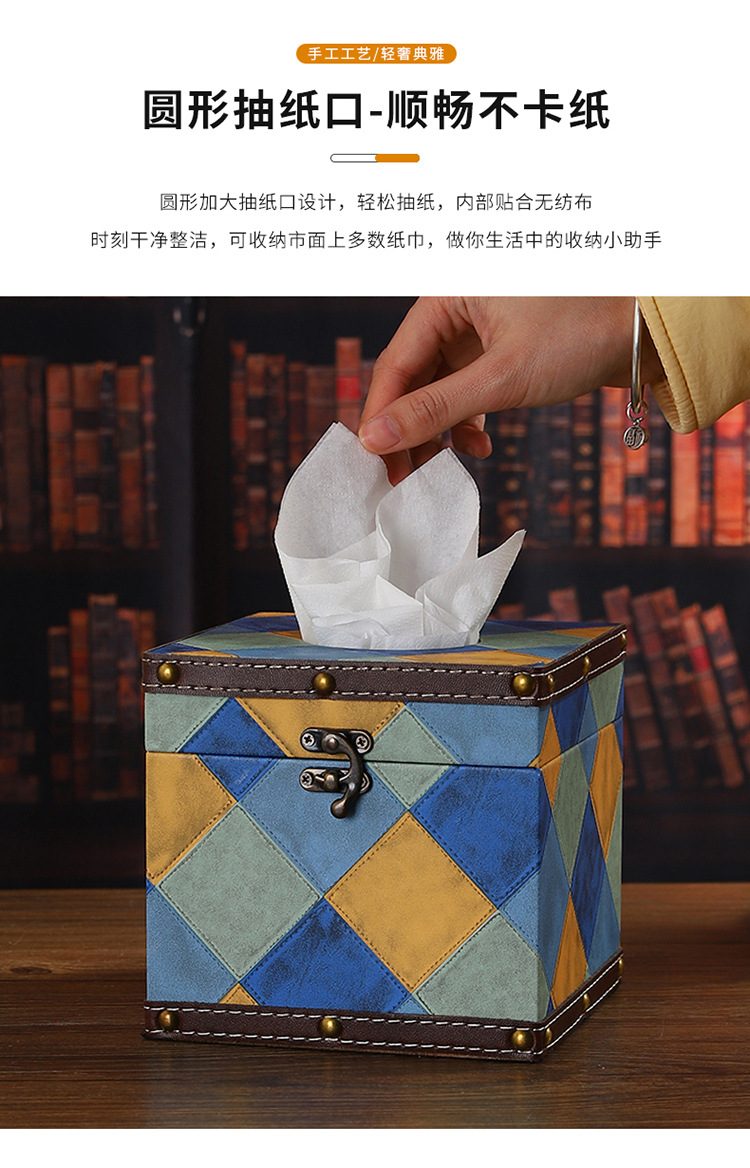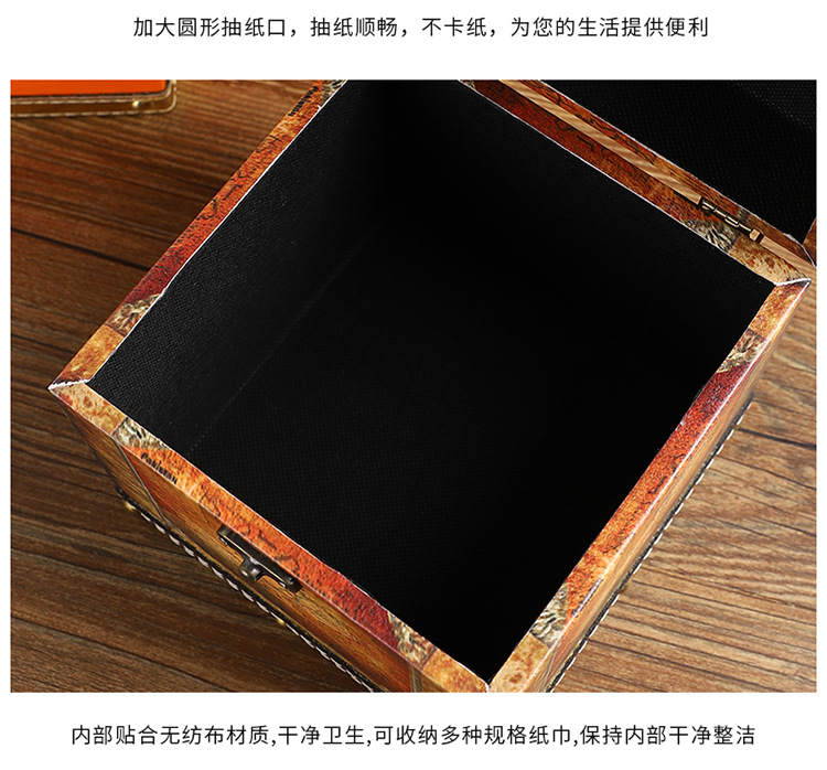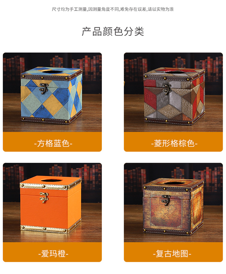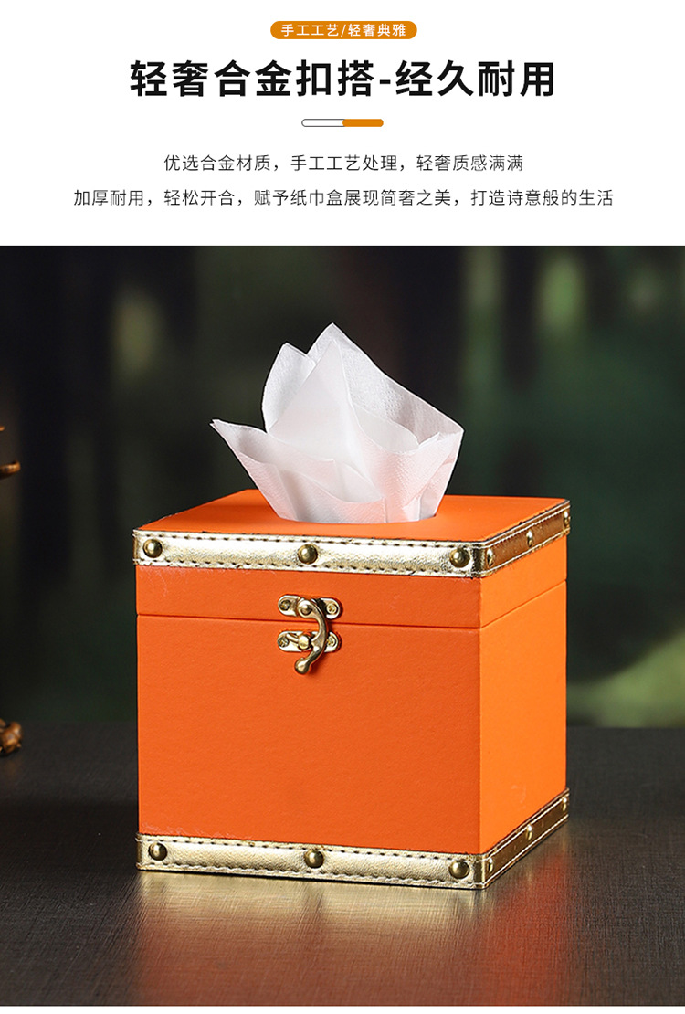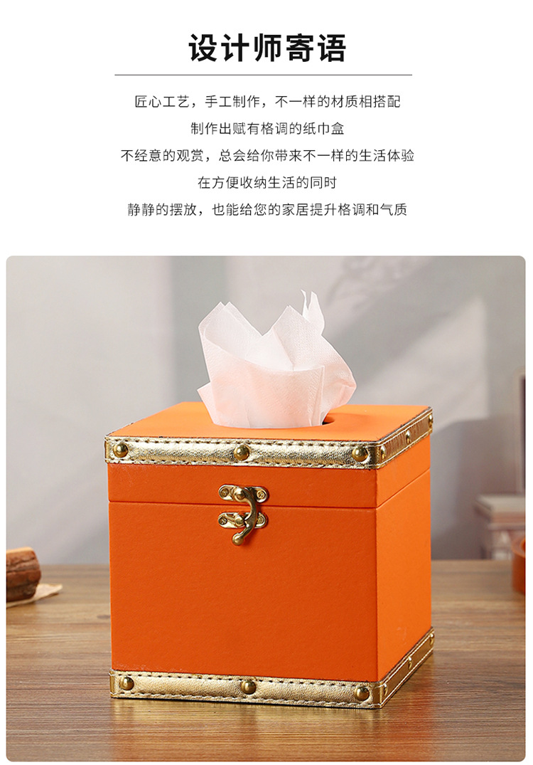 创意撞色皮革纸巾盒酒店餐厅高档餐巾纸盒方形家用轻奢木质抽纸盒 投诉