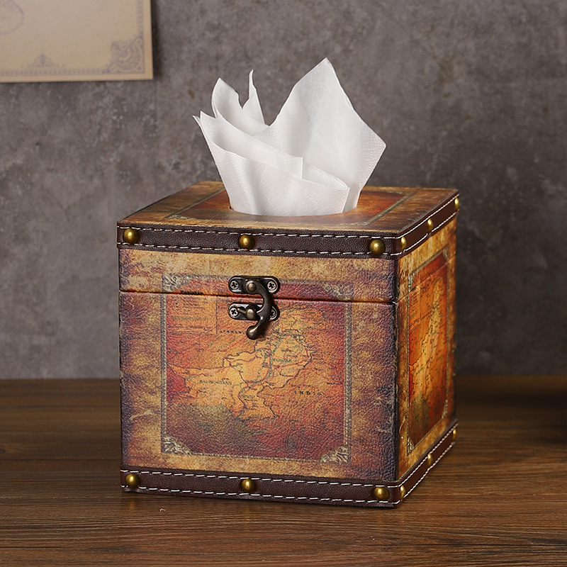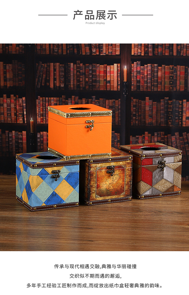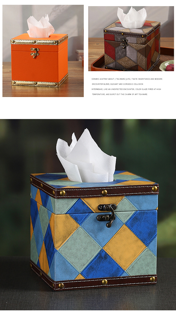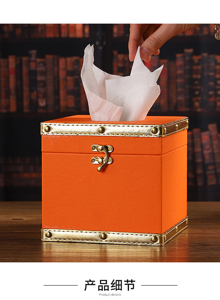 创意撞色皮革纸巾盒酒店餐厅高档餐巾纸盒方形家用轻奢木质抽纸盒 投诉