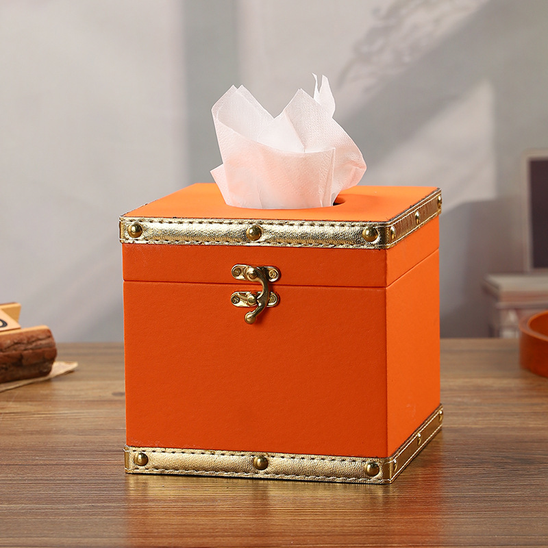 创意撞色皮革纸巾盒酒店餐厅高档餐巾纸盒方形家用轻奢木质抽纸盒