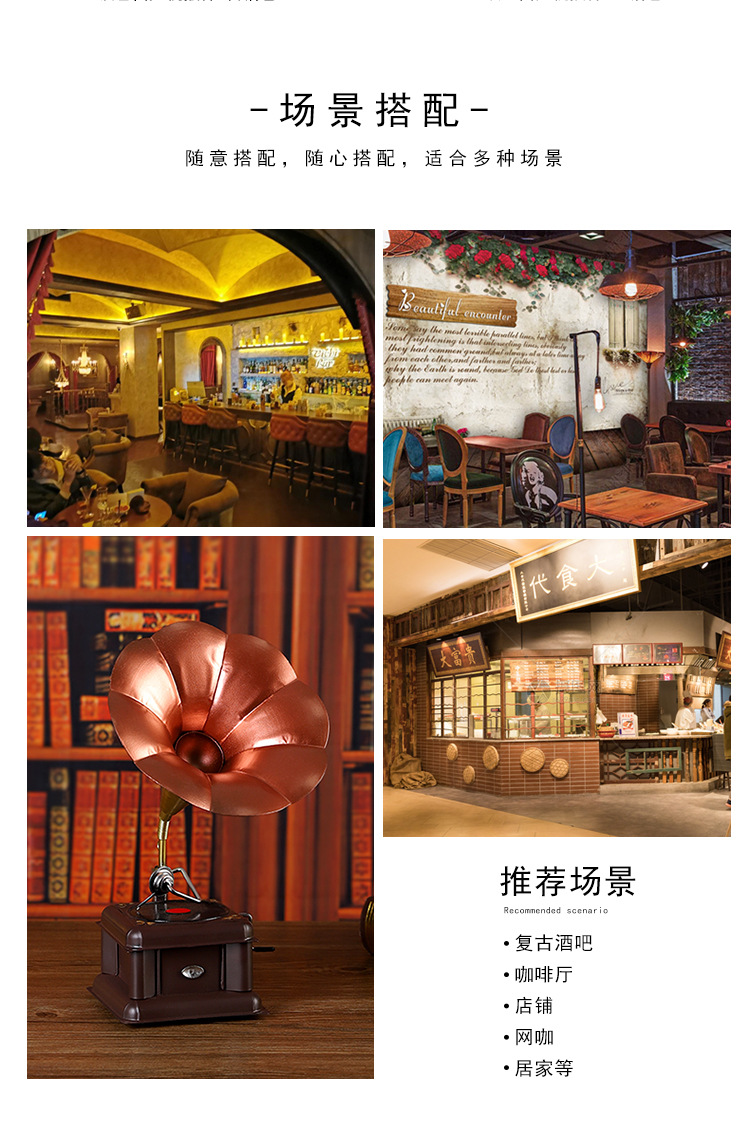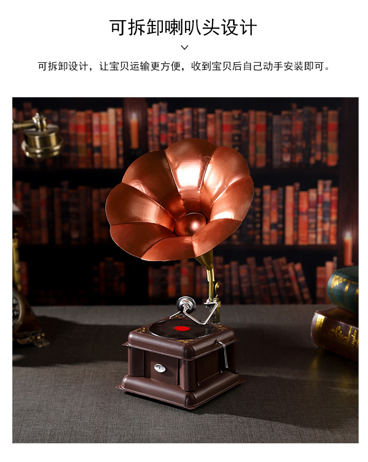 欧式复古留声机摆件怀旧仿古老式留声机橱窗艺术工艺品家居装饰品 投诉