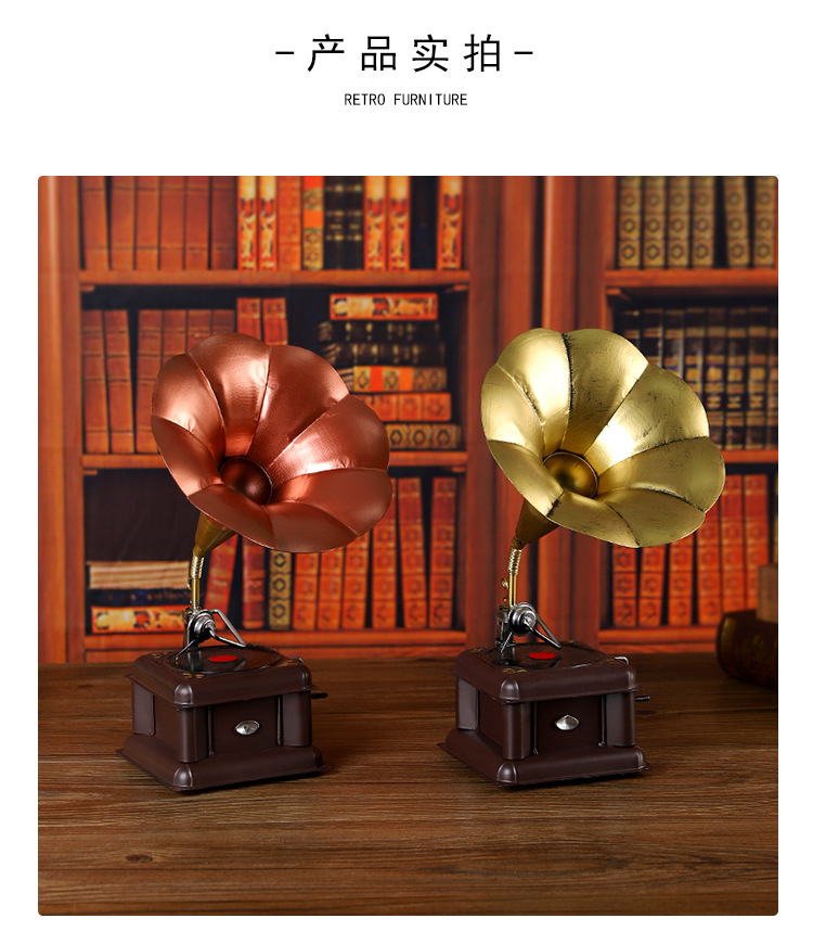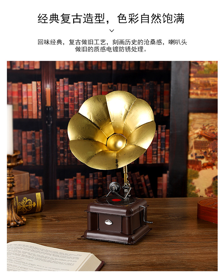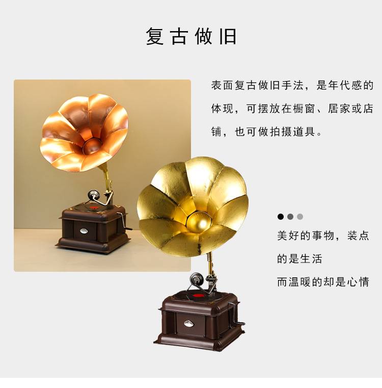 欧式复古留声机摆件怀旧仿古老式留声机橱窗艺术工艺品家居装饰品