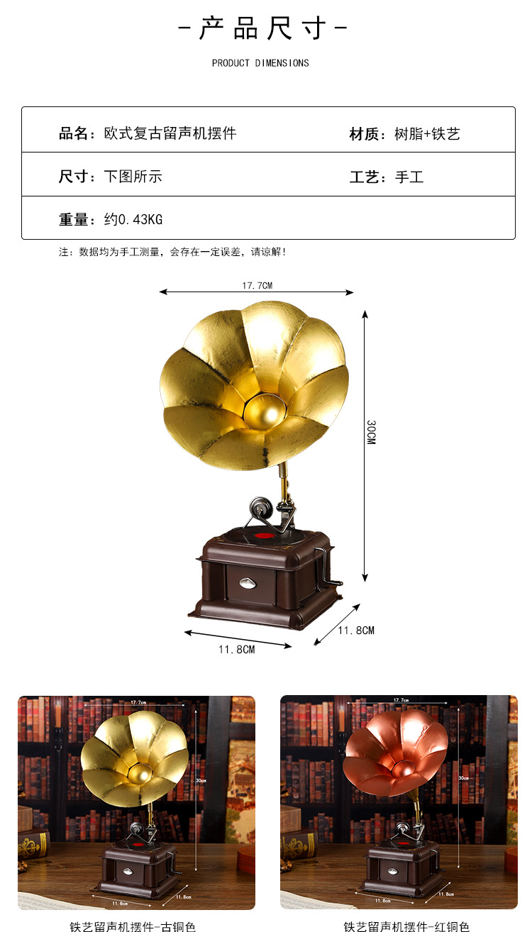 7122Y-02铁艺留声机摆件--红铜色--中号 ¥4500 997个可售