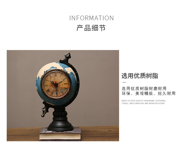 欧美式创意球形摆件家居客厅办公室内书房桌面家装饰品时钟摆设 投诉