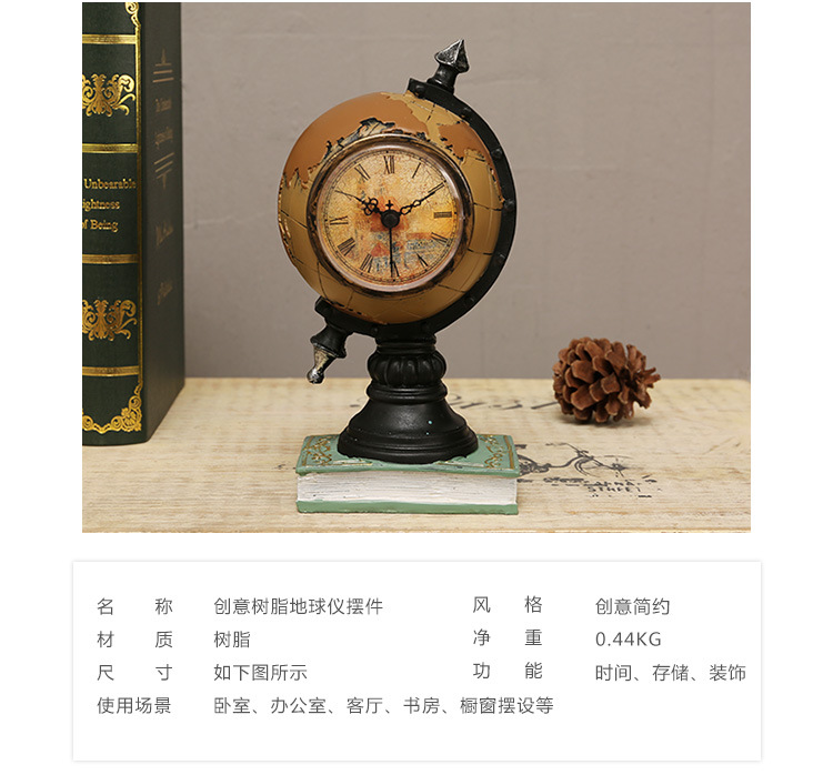欧美式创意球形摆件家居客厅办公室内书房桌面家装饰品时钟摆设