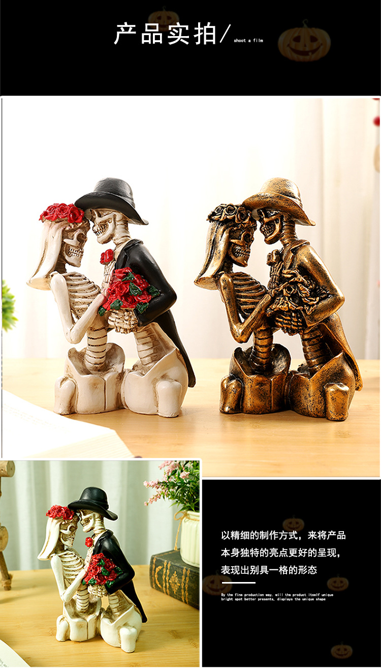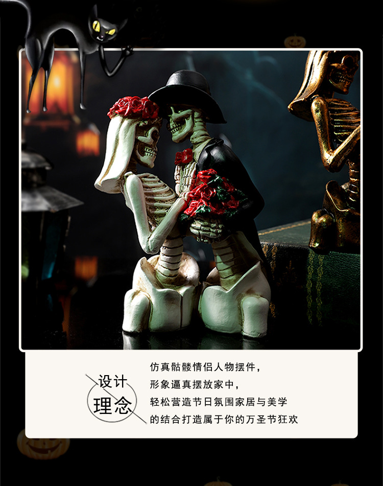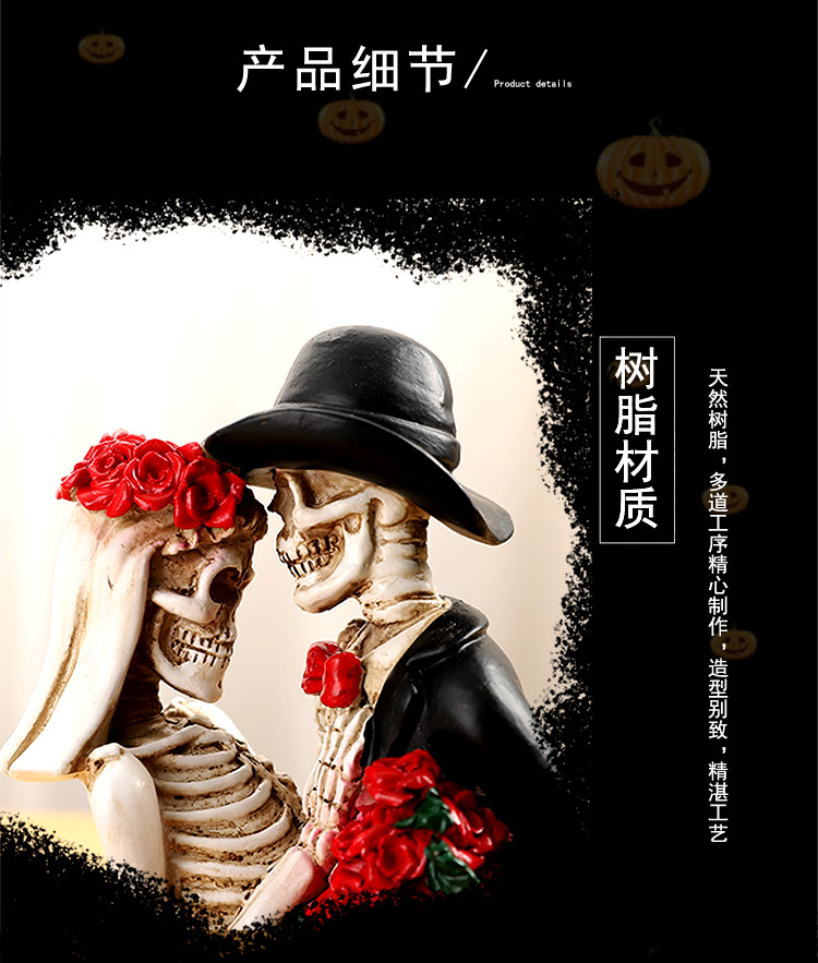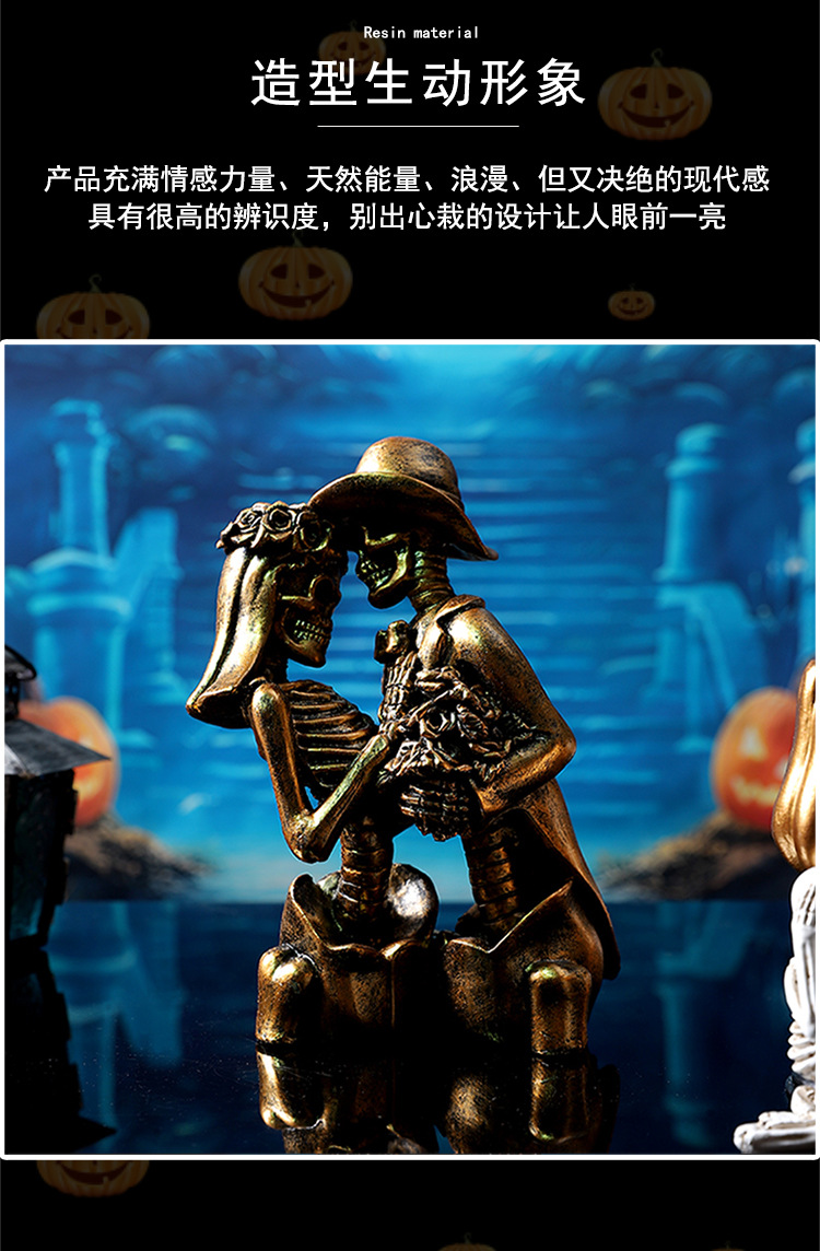 跨境万圣节骷髅情侣人物摆件哥特式浪漫情侣骷髅模型鬼屋气氛装饰 投诉
