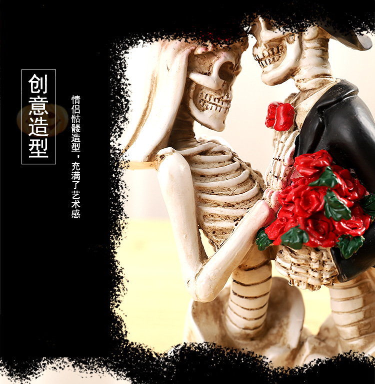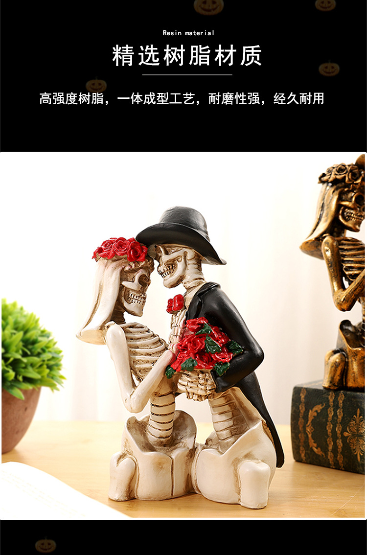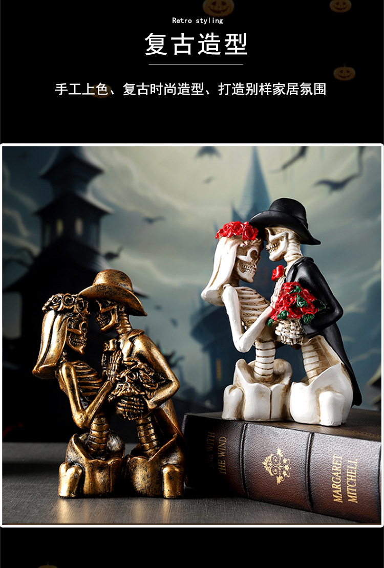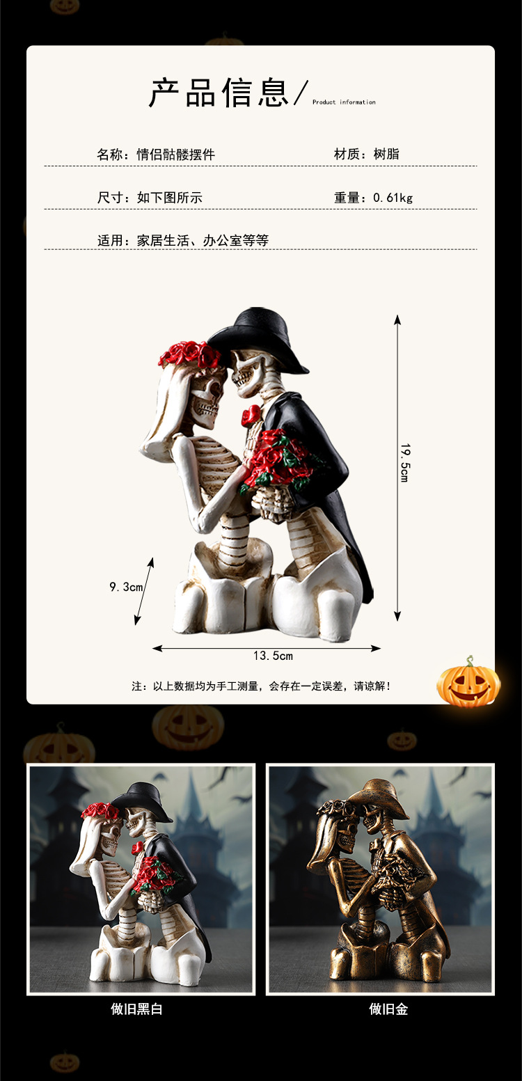 跨境万圣节骷髅情侣人物摆件哥特式浪漫情侣骷髅模型鬼屋气氛装饰 投诉