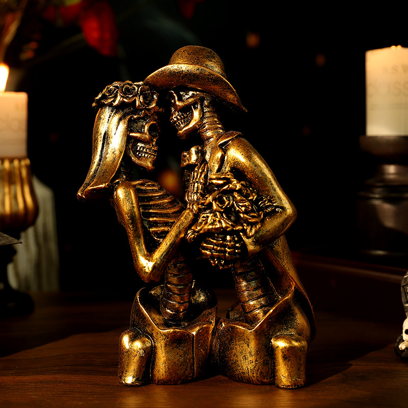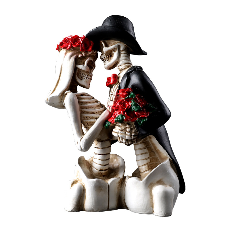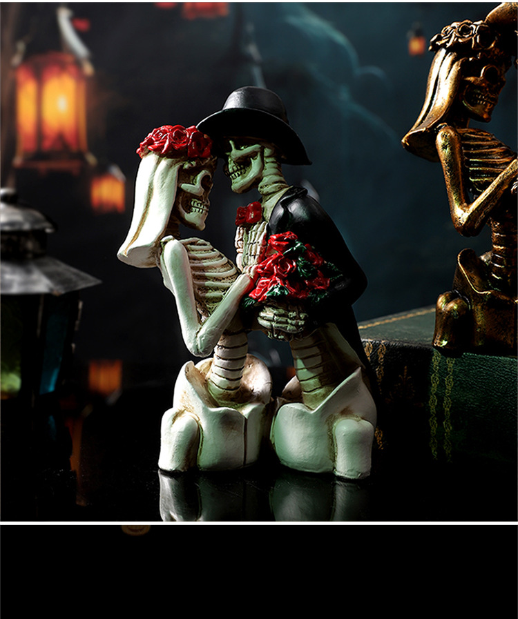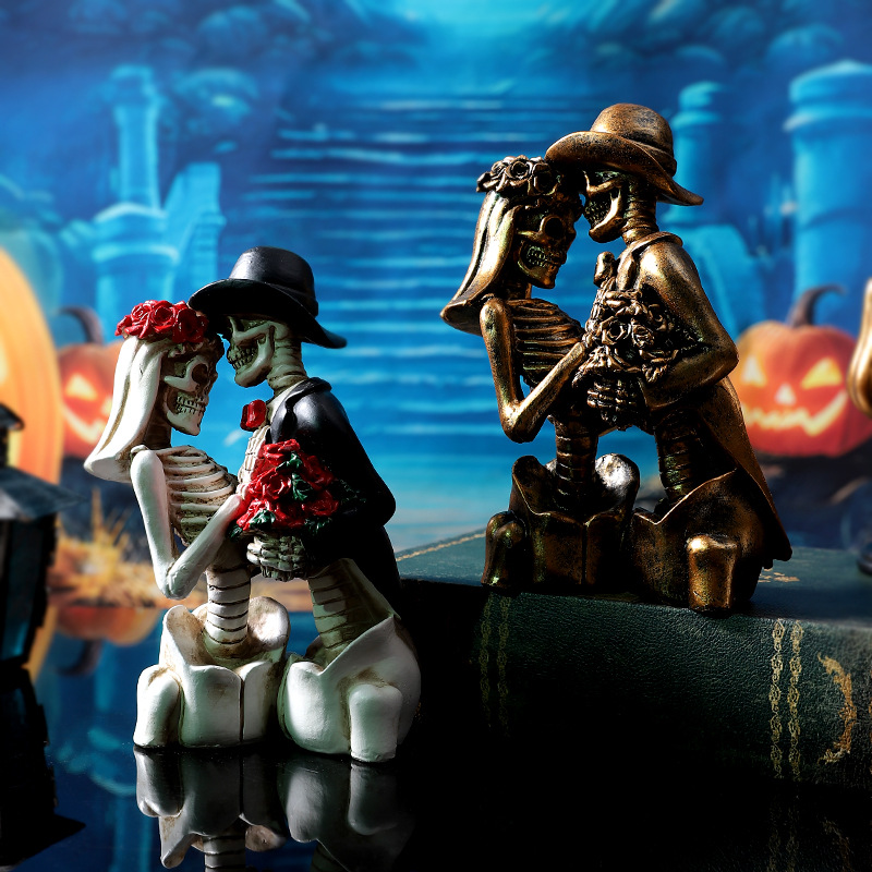 跨境万圣节骷髅情侣人物摆件哥特式浪漫情侣骷髅模型鬼屋气氛装饰