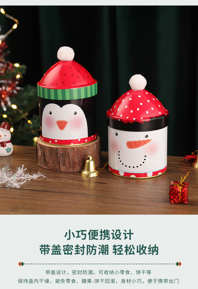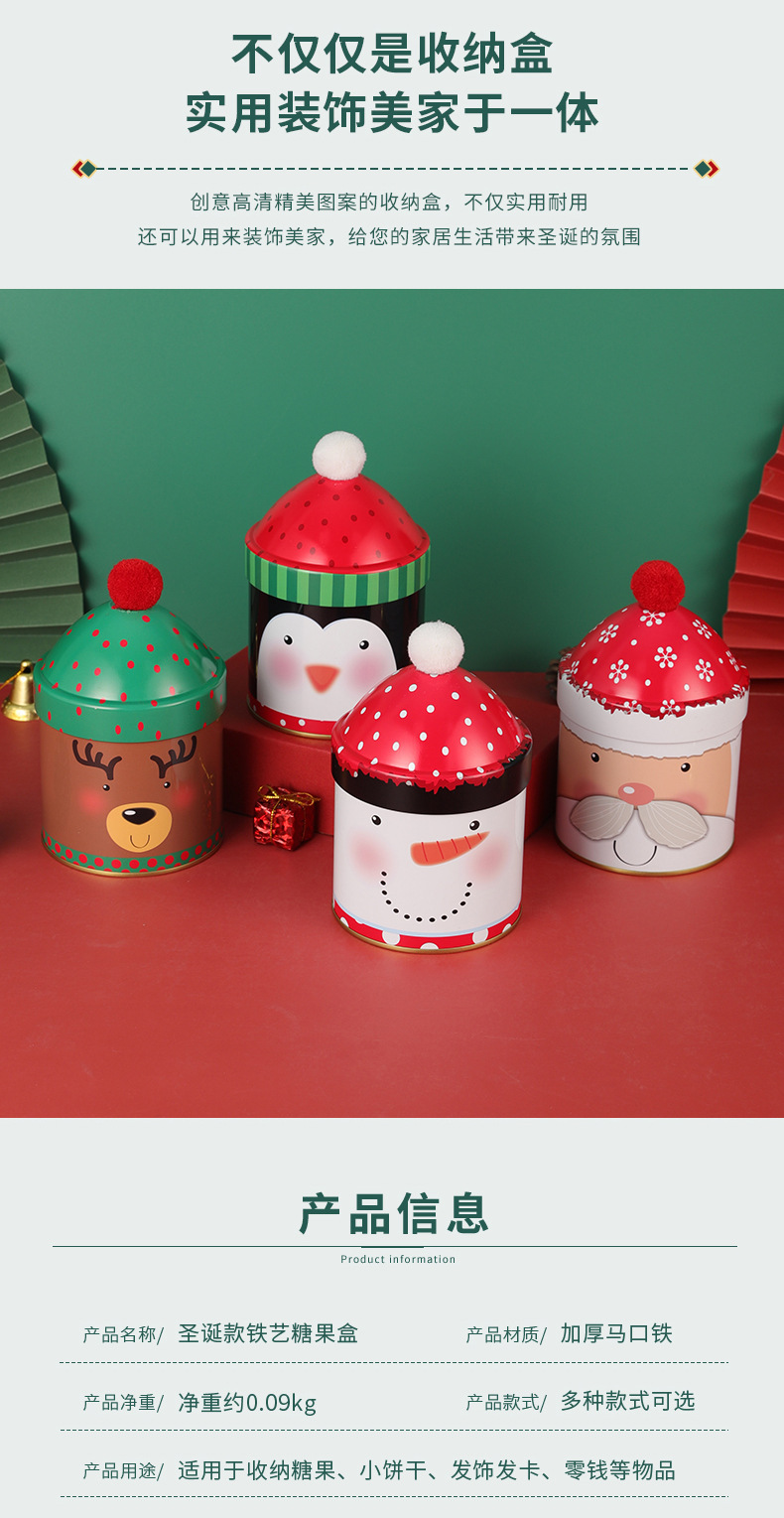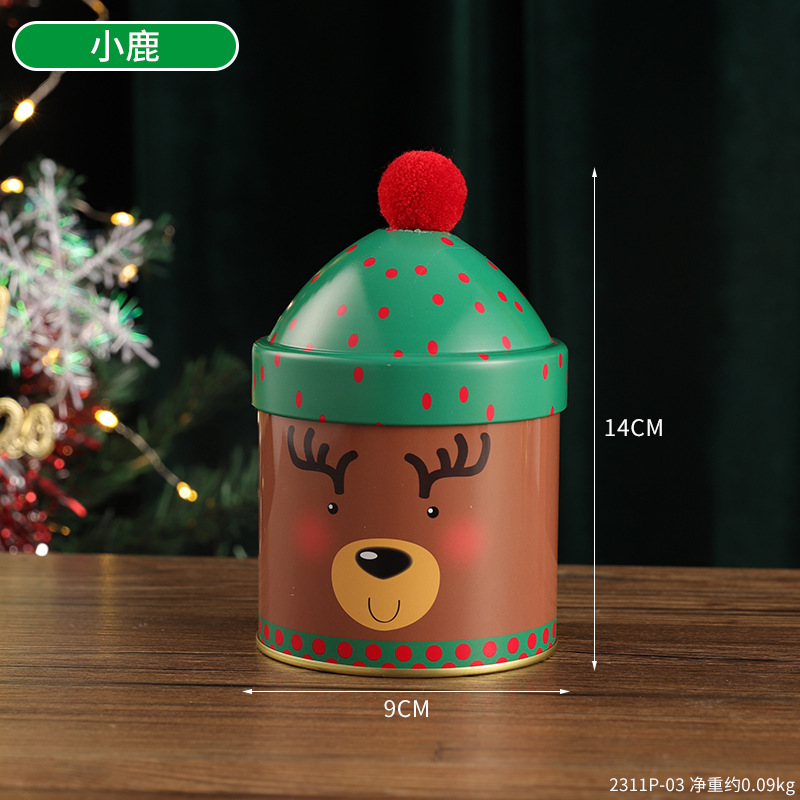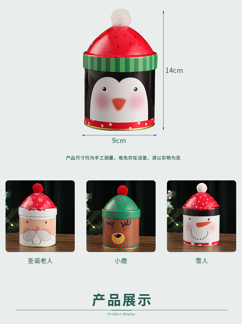 个性圣诞节糖果桶圣诞帽收纳盒麋鹿雪人铁盒伴手礼儿童礼物包装 投诉
