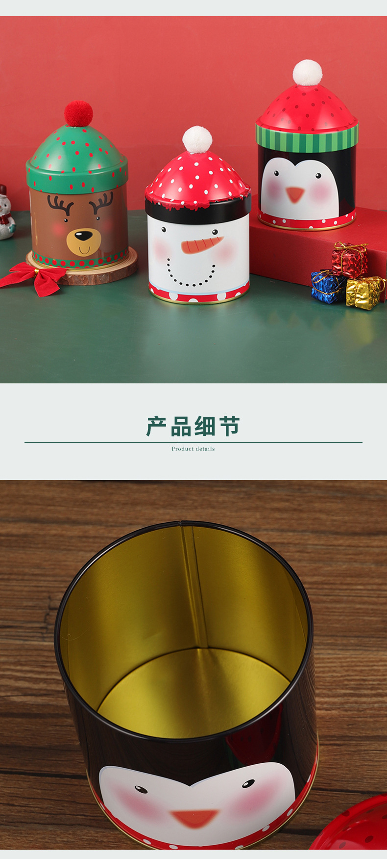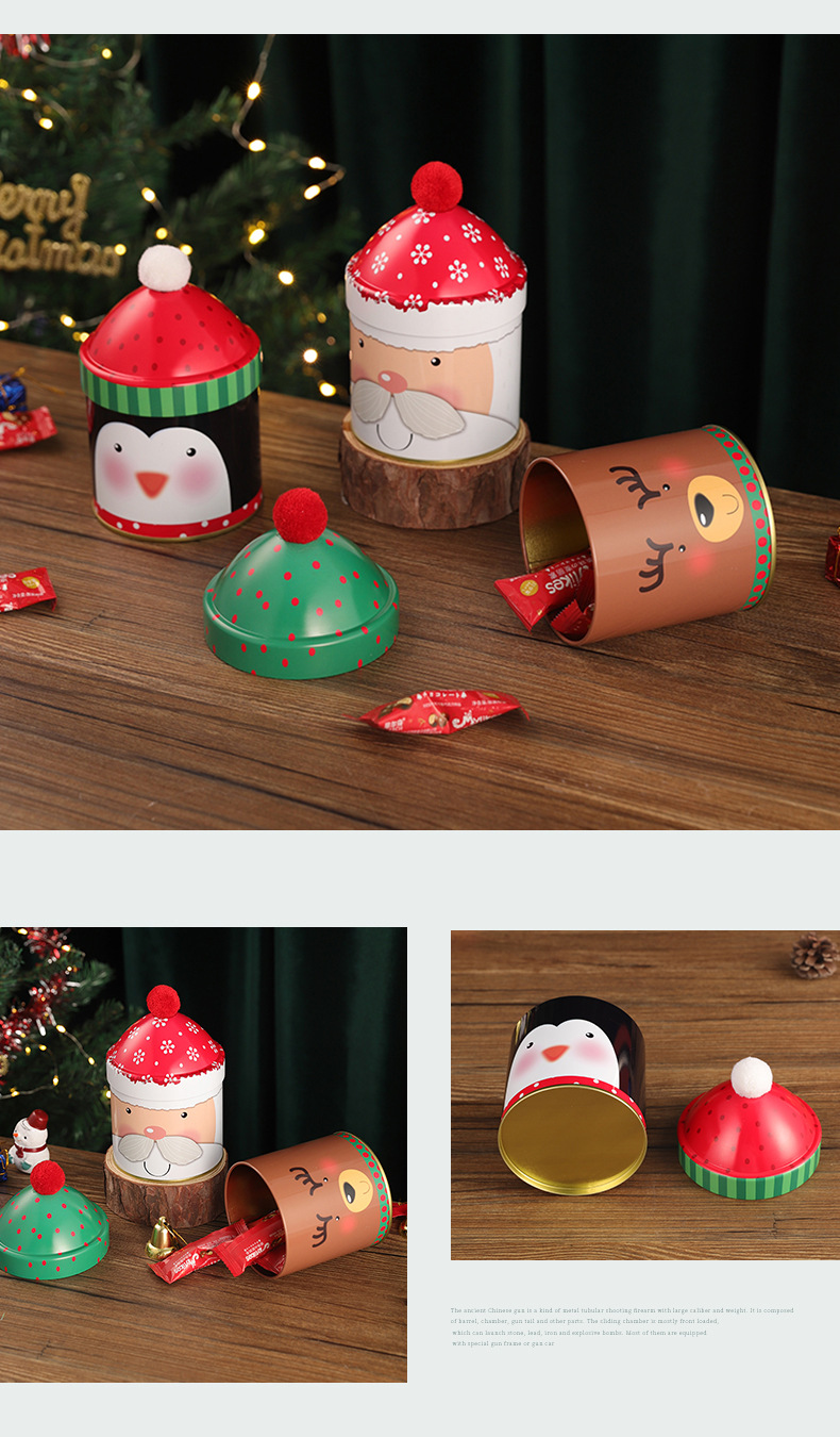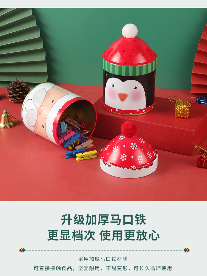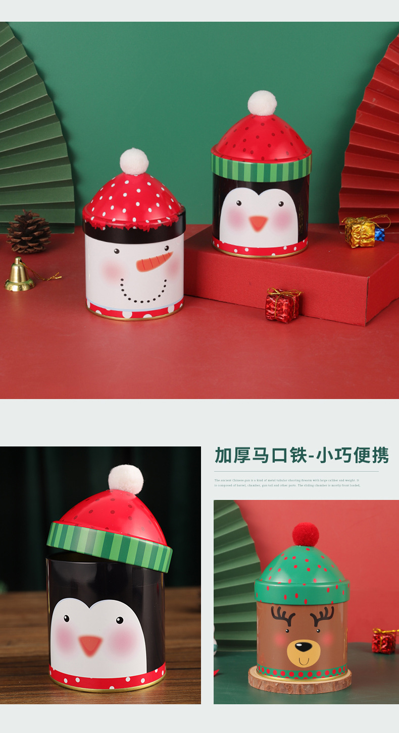 个性圣诞节糖果桶圣诞帽收纳盒麋鹿雪人铁盒伴手礼儿童礼物包装 投诉
