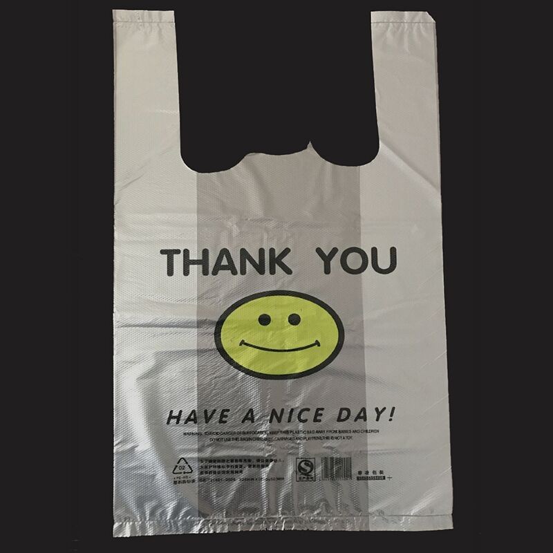 塑料包装袋购物透明打包方便笑脸红色一次性超市食品背心手提袋子