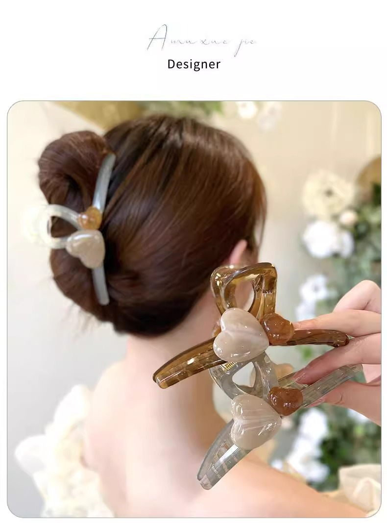 2024新款头发夹子头饰大号拼色爱心抓夹女气质后脑勺鲨鱼夹盘发抓 English | 投诉