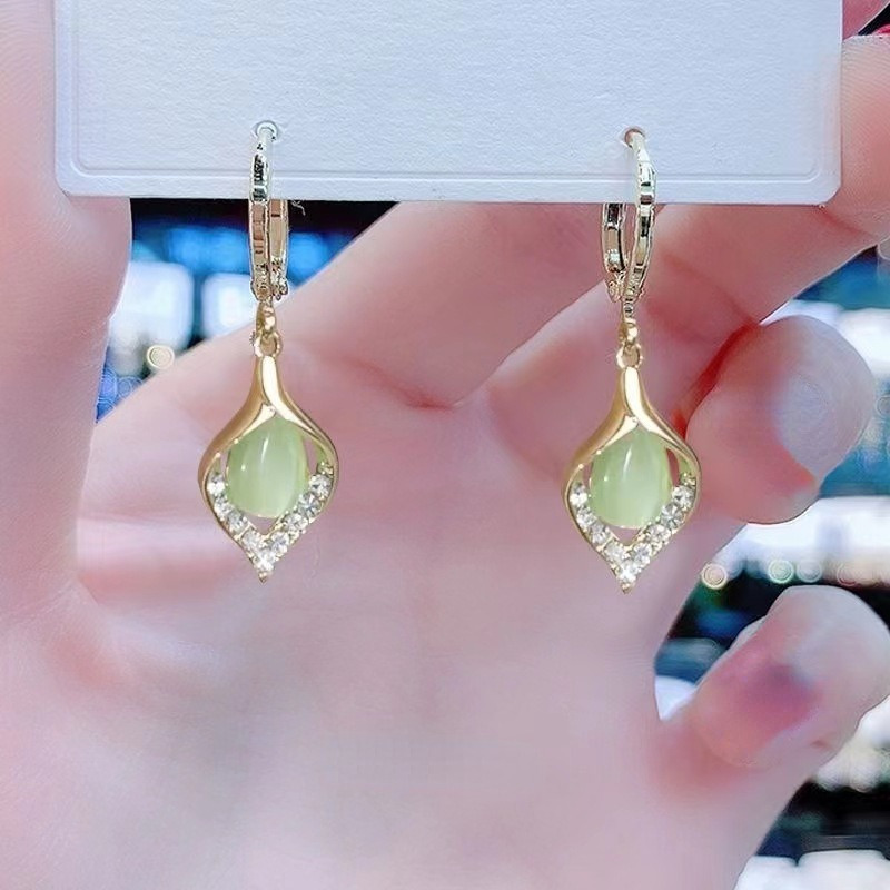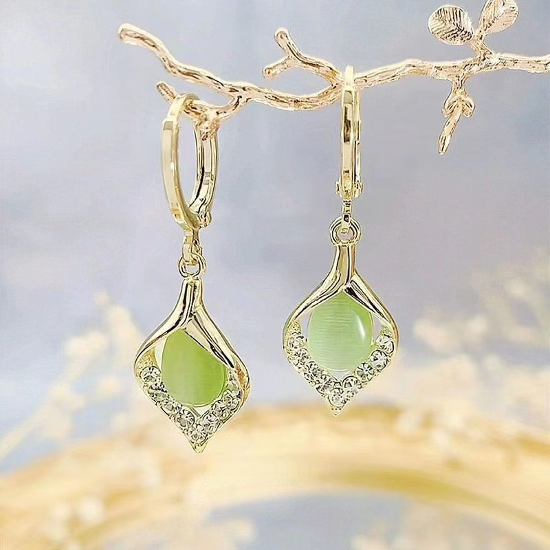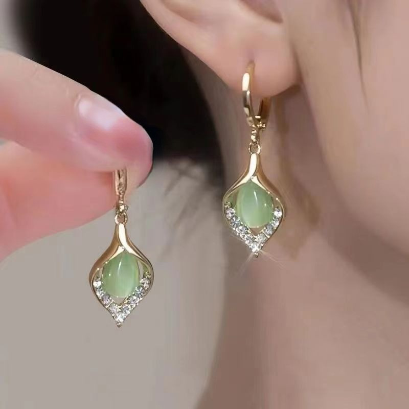 新款猫眼石耳环女高级感镶钻轻奢气质水滴耳坠清新百搭纪念礼物 English | 投诉