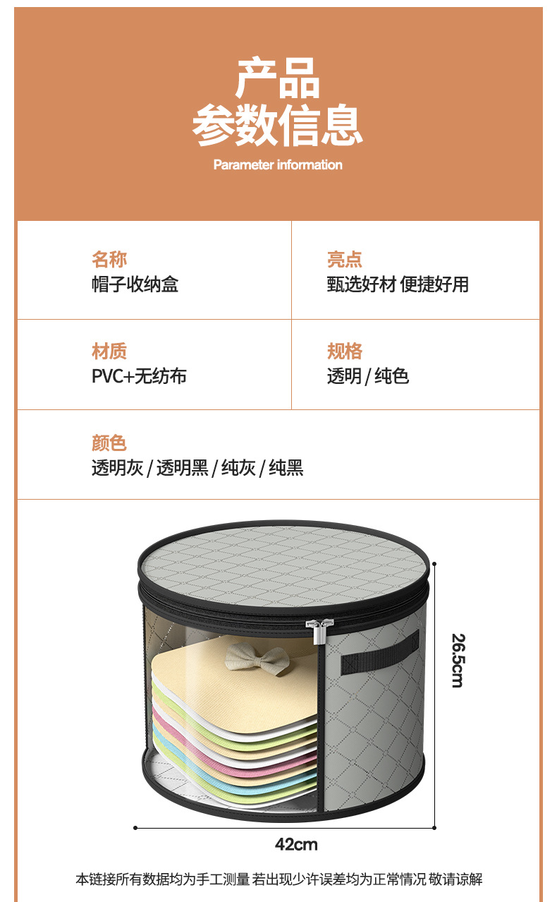 透明帽子收纳桶衣物玩具收纳包可折叠防尘防潮帽檐收纳袋旅行神器 投诉