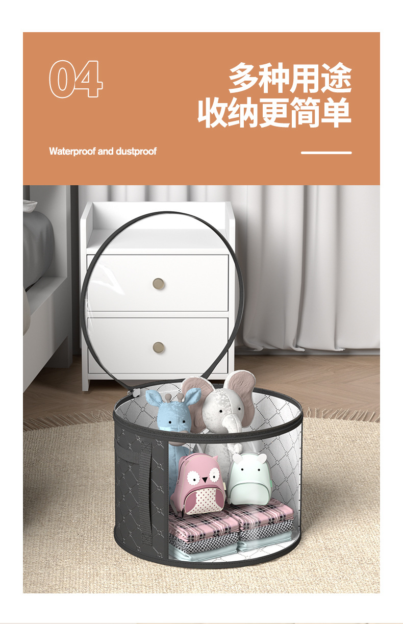 产品类别: 衣物收纳袋 品牌: (n+g)*a 是否进口: 否 型号: NSG000053 形状: 圆筒式 材质: 无纺布 功能: 多用途 适用场景: 卧室 收纳场景: 旅行收纳,卧室收纳 适用范围: 鞋,文具,皮包,杂物,衣物,脏衣 风格: 现代简约 颜色: 透明黑,纯黑色,透明灰,纯灰色 产地: 义乌 箱装数量: 其他 产品上市时间: 2025年 价格段: 5元以内 贸易属性: 内贸+外贸 专利: 否 货号: NSG000053 有可授权的自有品牌: 是 重量: 0.5 kg/个