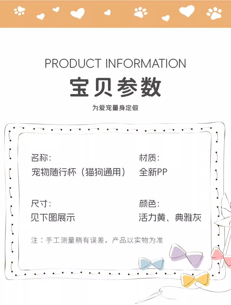 材质: 塑料 产地: 中国 是否进口: 否 成套自动喂食: 否 货号: CWYP-FF532 品牌: 其他 箱装数量: 其他 是否专利货源: 否 有可授权的自有品牌: 否 是否跨境出口专供货源: 是 是否属于礼品: 是,商务礼品 是否IP授权: 否 3: 外出随带 1: 宠物用品 2: 代发包邮 重量: 0.5 kg/个