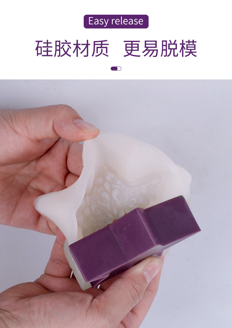 是否进口: 否 产品类别: 蜡烛模具 形状: 不规则形 材质: 硅胶 货号: SX 包装规格: OPP袋 产品上市时间: 2024 价格段: 5-10元 是否有专利: 否 用途: 制作蜡烛 重量: 0.2 kg/件