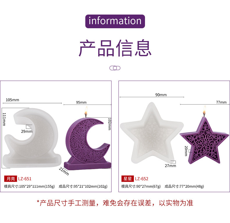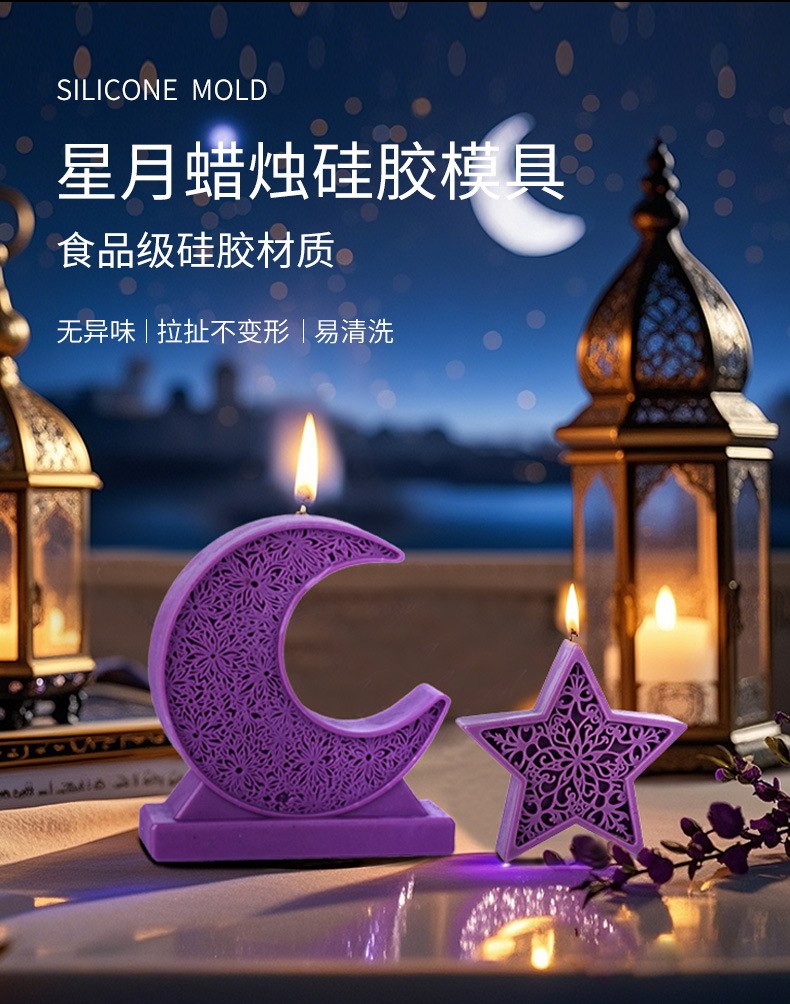 DIY手工弯月蜡烛模具 月亮星星香薰石膏摆件 跨境爆款 投诉