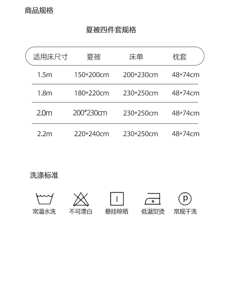 | 2.0m 夏被四件套【200*230夏被+床单+一对枕套】 | ¥12000 | 8887床可售 |