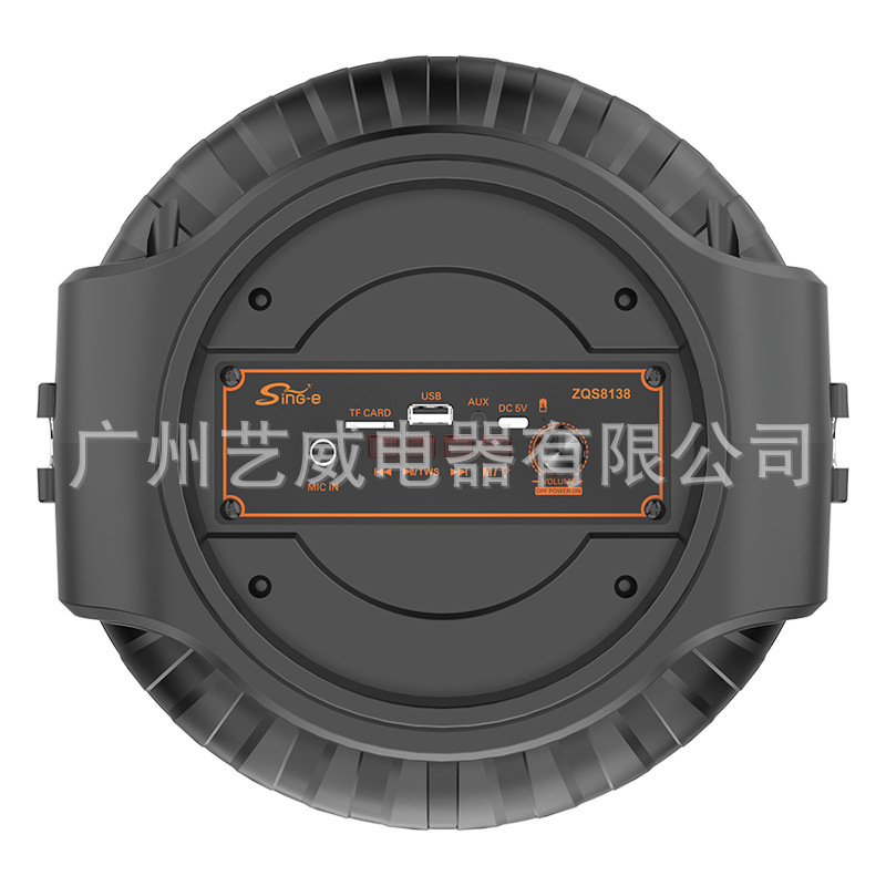 带BT/FM/USB/TF卡/MIC、无显示屏、USB带5V升压、无遥控,带锂电保护、麦克风座靠外装、不带无线麦功能,电位器音量、对箱功能,带幻彩、幻彩受M键控制